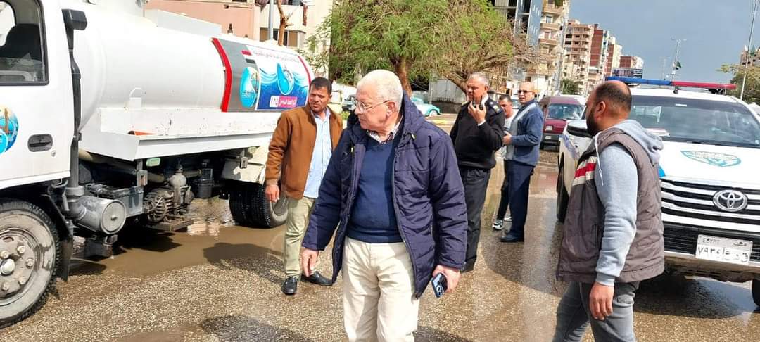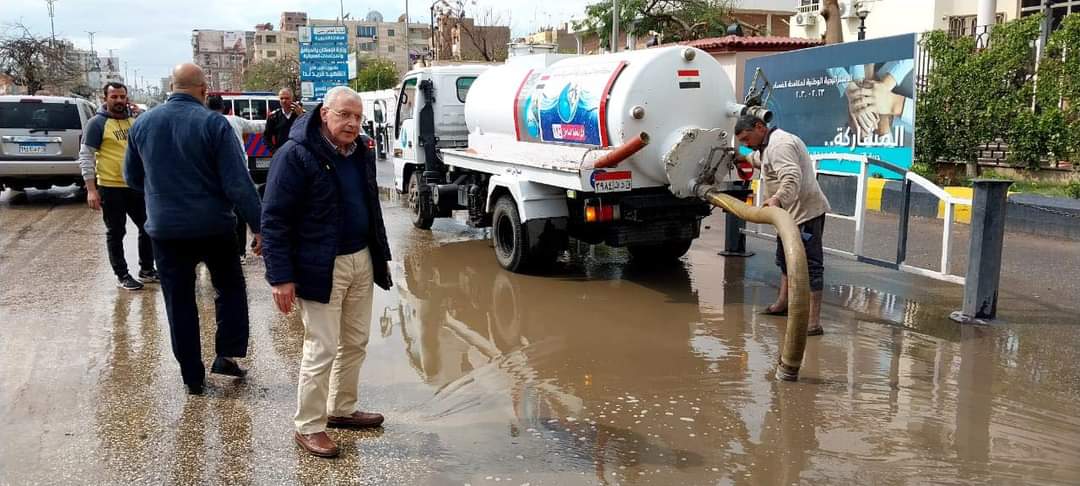 كما أمر بعمل حصر للأماكن التي تتراكم بها مياه الأمطار وتم التأكد من تمركز سيارات الشفط والكسح ومعدات الصرف اللازمة بالشوارع الرئيسية والفرعية والميادين المختلفة لمواجهة تراكم أي كميات مياه للأمطار والتدخل الفوري في حالة حدوث أية مشكلة.