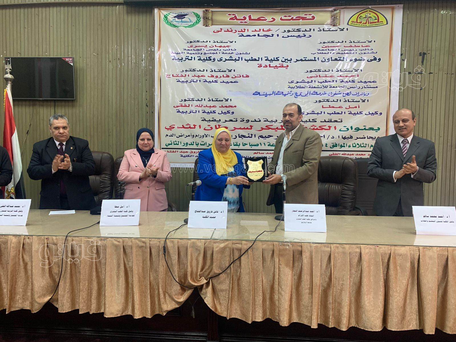 وأقيمت الندوة برعاية الدكتور خالد الدرندلي رئيس جامعة الزقازيق والدكتور عاطف حسين نائب رئيس الجامعة لشئون التعليم والطلاب والدكتورة جيهان يسري نائب رئيس الجامعة لشئون خدمة المجتمع وتنمية البيئة وتحت إشراف الدكتورة فاتن فاروق عبدالفتاح عميد كلية التربية والدكتور أحمد عناني عميد كلية الطب البشري ومستشار رئيس الجامعة للأنشطة الطلابية.
