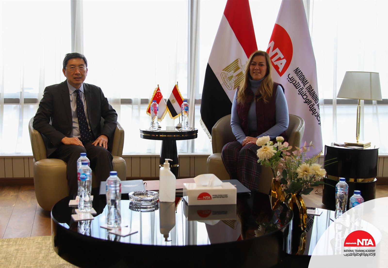المدير التنفيذي للأكاديمية الوطنية للتدريب تستقبل سفير سنغافورة في القاهرة