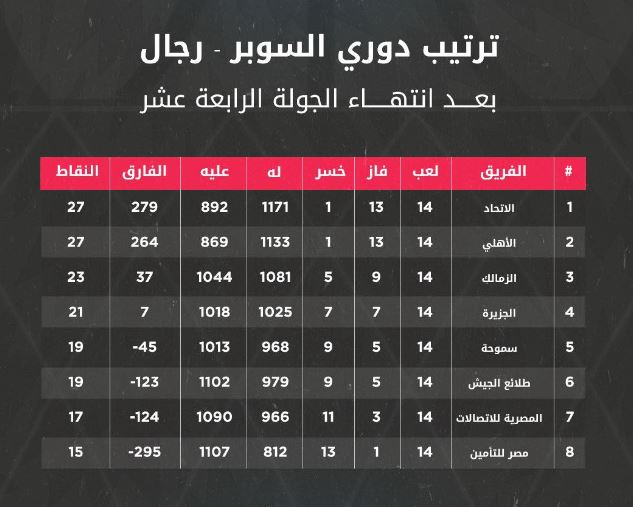 واختتمت مؤخرا منافسات الدور التمهيدي من بطولة دوري السوبر وجاء ترتيب الجدول كالتالي: