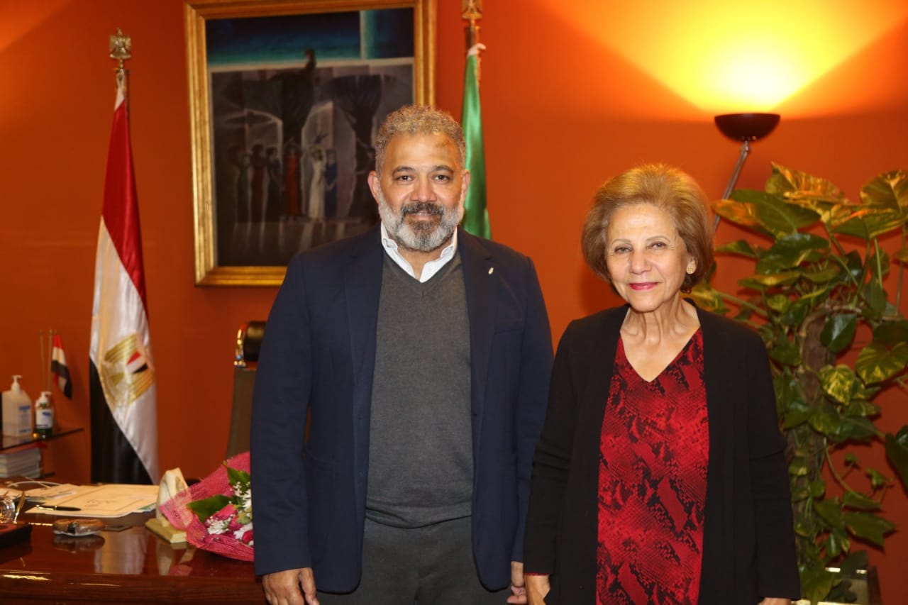 استقبل الدكتور خالد داغر رئيس دار الأوبرا المصرية الدكتورة سلوى الشوان أستاذ البحث الموسيقى بجامعة لشبونة بالبرتغال، وابنة الموسيقار الراحل عزيز الشوان أثناء زيارتها للقاهرة.