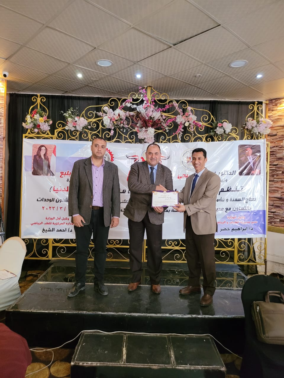 كما تم على هامش المبادرة تكريم الدكتور أشرف العبد المشرف السابق لوحدة الطب الرياضى بالبحيرة بعد بلوغه سن المعاش تقديرا لجهوده فى خدمة منظومة الطب الرياضى بالبحيرة.