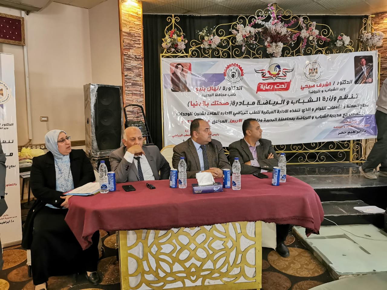 حضر مبادرة صحتك بالدنيا الدكتور أحمد الشيخ رئيس الادارة المركزية للطب الرياضي والدكتور إبراهيم خضر مدير عام مديرية الشباب والرياضة بالبحيرة وأحمد عبد ربه مدير عام الوحدات والمراكز الطبية.