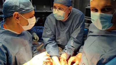 أضاف البيان إنه تم إجراء جراحة ثانية عملية إصلاح الصمام الثلاثي الشرفات لمريض شاب (متعافي من حقن متعدد بالوريد) أدت الي تجمعات صديدية علي الصمام وتكيسات صديدية بالرئتين والتهاب مزمن بأغشية القلب ولا يستجيب للعلاج الدوائي وقام باجراء العملية الدكتور باسم مفرح بمعاونة الأطباء الاطباء نهي هلال والدكتور محمد عمر وطاقم التمريض اسراء اسعد وبرغم عوامل الخطورة المتعددة ونقص نسبة الصفائح الدموية بالدم الا انه تم اجراء العملية بنجاح ومازال المريض يخضع للعلاج بالعناية المركزة بالقسم