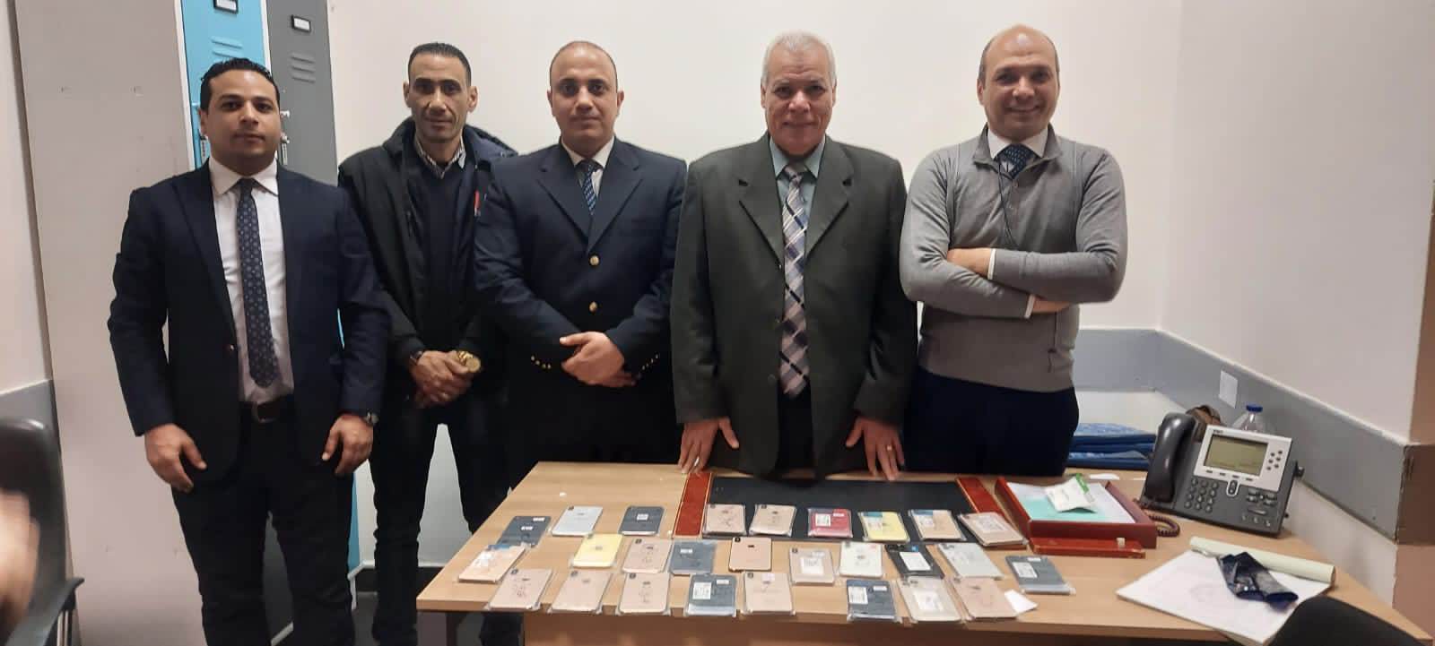 وبتفتيش حقيبة بحوزته، تم ضبط ٢٧ هاتفًا محمولًا، قام أحمد أبو بكر مدير الجمرك بتكليف لجنة من كل من أحمد إبراهيم عمر ومحمود فتحي مأموري الجمرك وبمشاركة كل من محمد سيد أحمد وهبة الله ثروت وياسر عثمان من إدارة الأمن الجمركي لاستكمال إجراءات التفتيش وتحرير محضر الضبط.