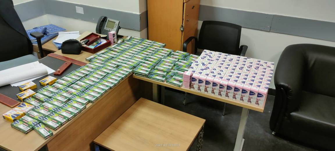 أحبطت سلطات جمارك مطار القاهرة الدولي برئاسة الدكتور ماجد موسى المدير العام محاولة راكب مصري حاول تهريب كمية كبيرة من الأدوية وراكب مصري آخر حاول تهريب 27 هاتفًا محمولًا داخل صالة الترانزيت، كما تم ضبط راكب مصري ثالث بحوزته أسلحة بيضاء وكرباج.