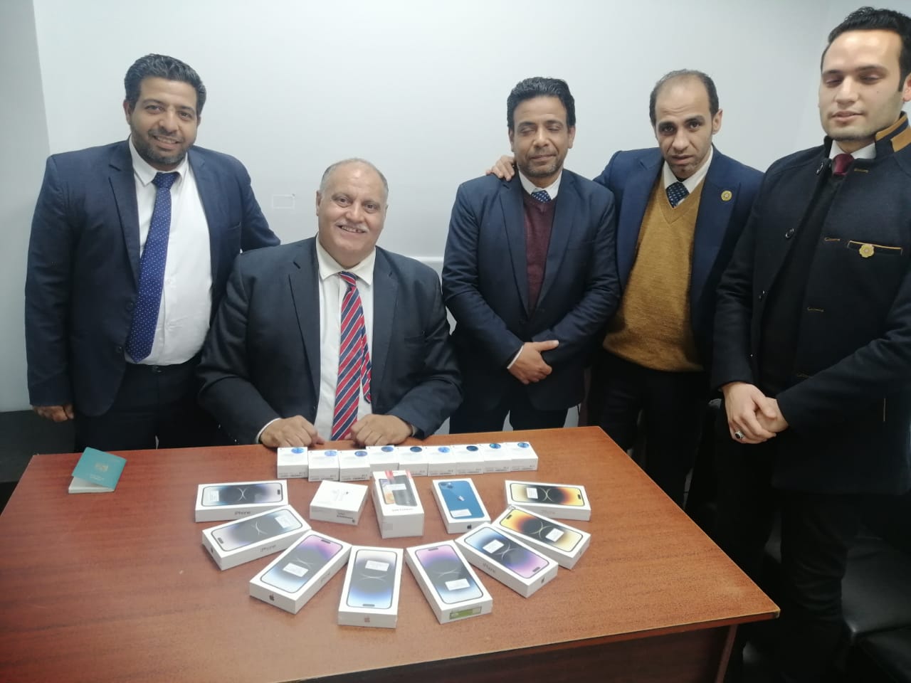 وبتفتيش حقائبه على جهاز الفحص بالأشعة بواسطة كل من إسلام علاء مأمور الجمرك، ومحمد عبد المنعم صالح رئيس القسم واللذان تلاحظ لهما وجود ما يشتبه ان يكون تليفونات داخل حقائب الراكب، وقام طاهر مكي مدير الحركة المشرف على العمل بالصالة الموسمية، بتكليف عمرو ماهر مأمور الجمرك، بتفتيش حقائب الراكب يدويا مما أسفر عن وجود عدد من التليفونات المحمولة، وقام إيهاب عميرة مدير الجمرك، بتكليف لجنة مكونة من عماد محروس وعمرو ماهر ماموري الجمرك، في حضور محمد سيد من إدارة الأمن الجمركي، باستكمال التفتيش اليدوي مما أسفر عن وجود 10 هواتف محمولة ماركة «iPhone 14 promax» و10 شواحن وسماعات.