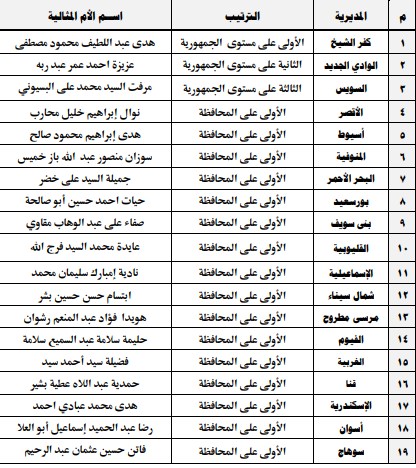 أسماء الفائزات في مسابقة الأمهات المثاليات