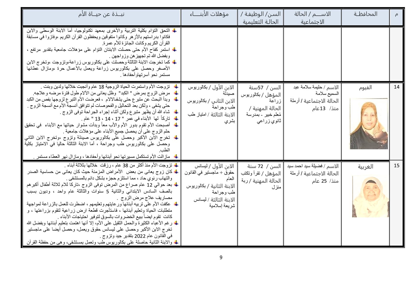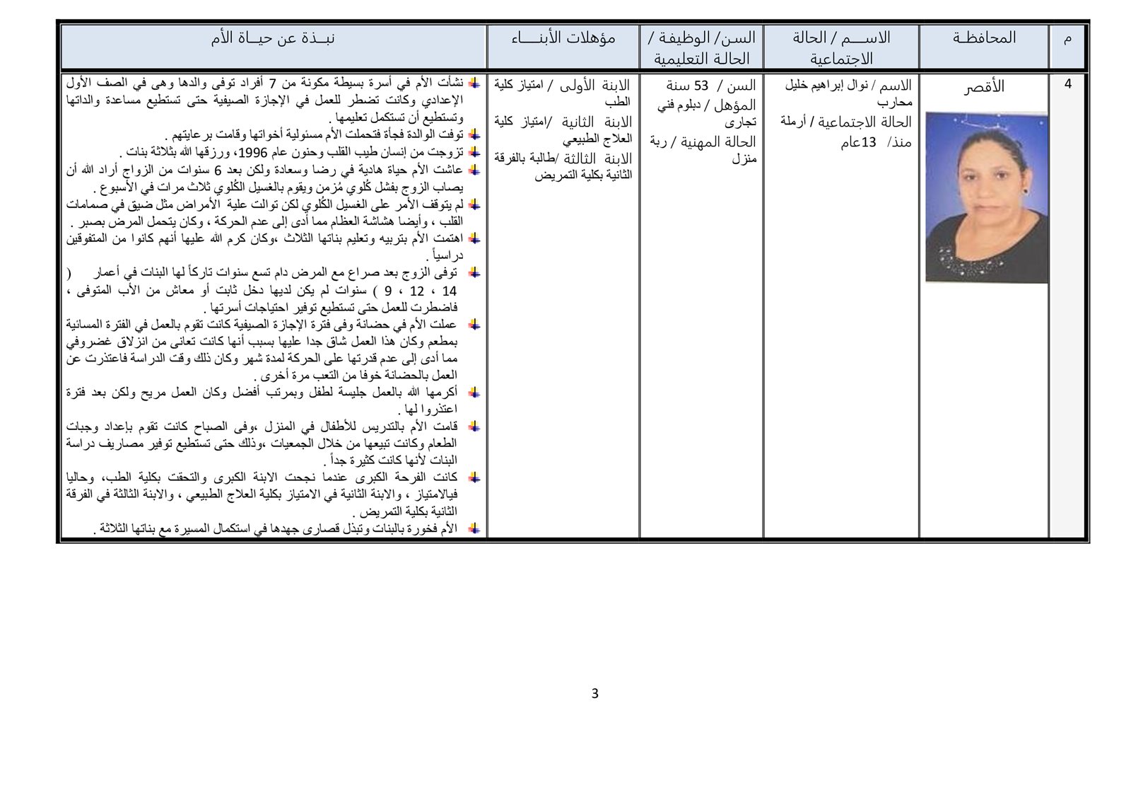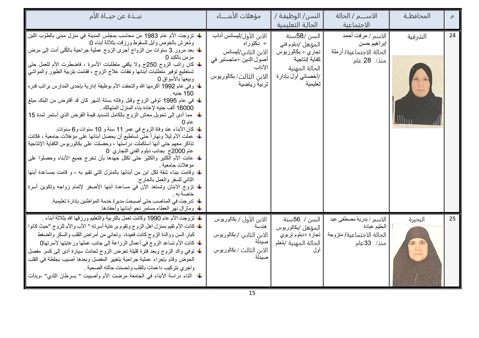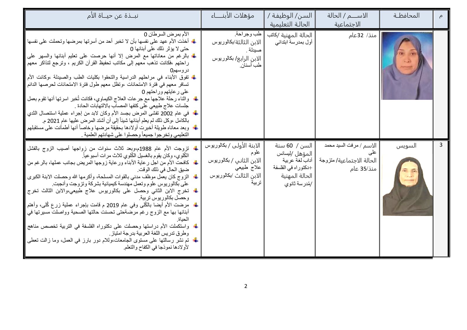نشرت وزارة التضامن الاجتماعي تفاصيل قصص كفاح السيدات الفائزات في مسابقة الأمهات المثاليات 36 على مستوى الجمهورية.