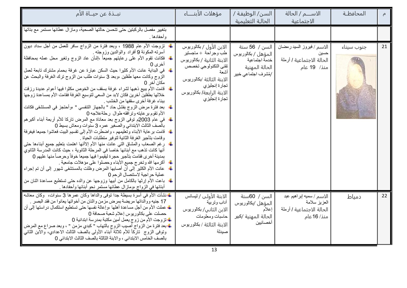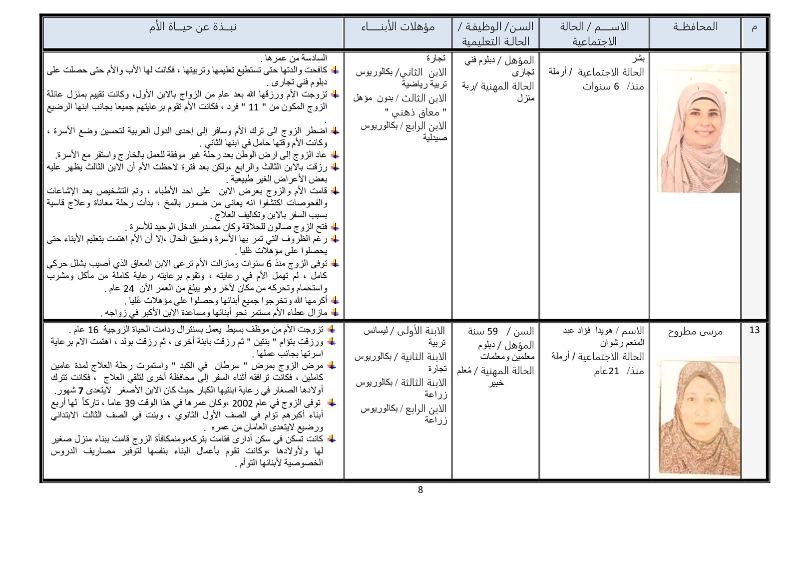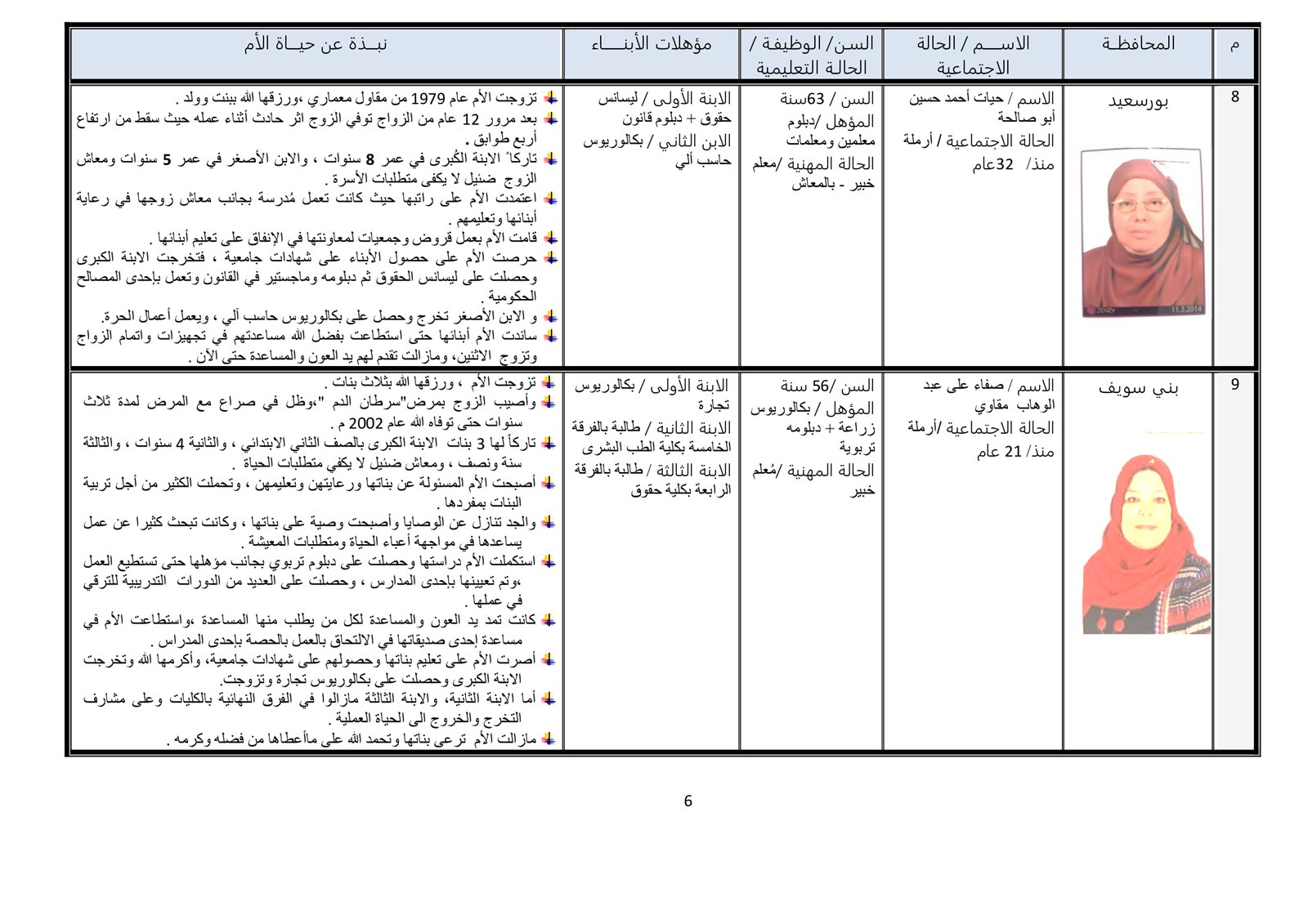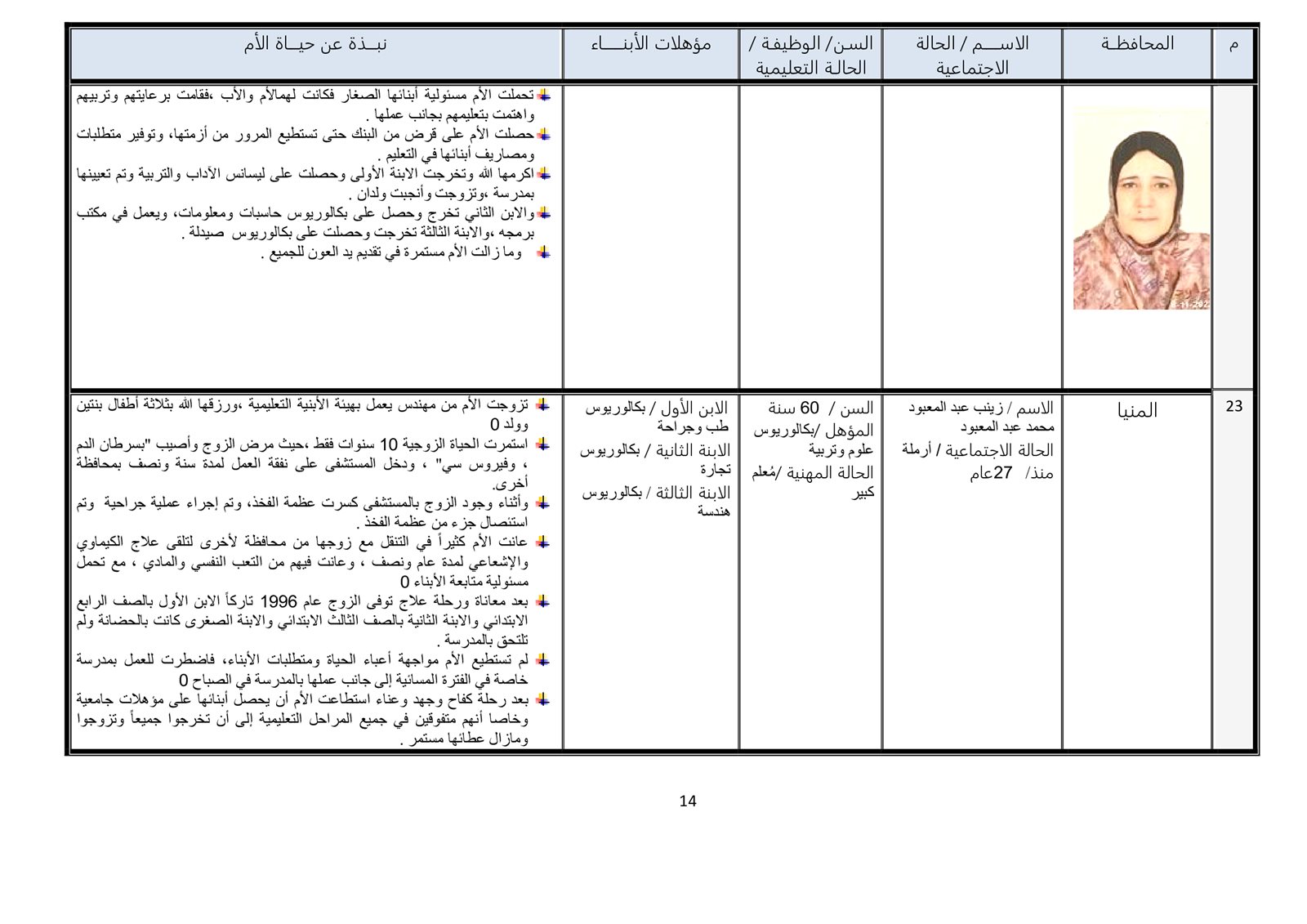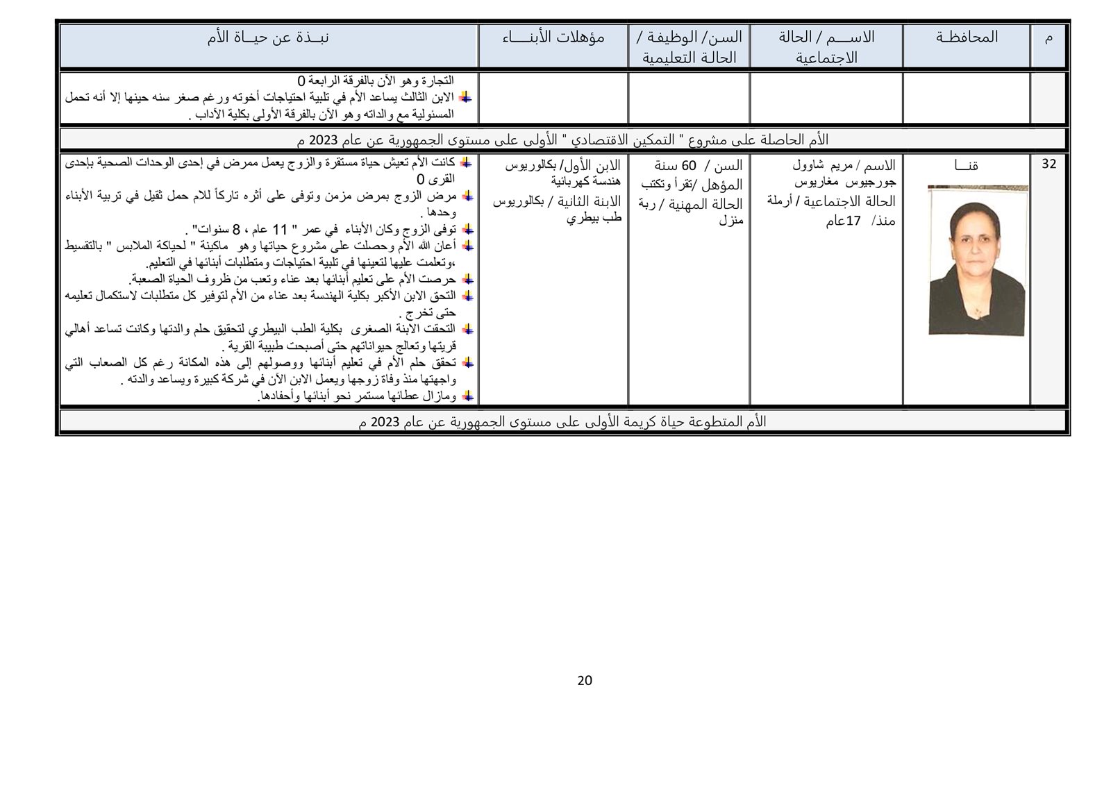 نشرت وزارة التضامن الاجتماعي تفاصيل قصص كفاح السيدات الفائزات في مسابقة الأمهات المثاليات 36 على مستوى الجمهورية.