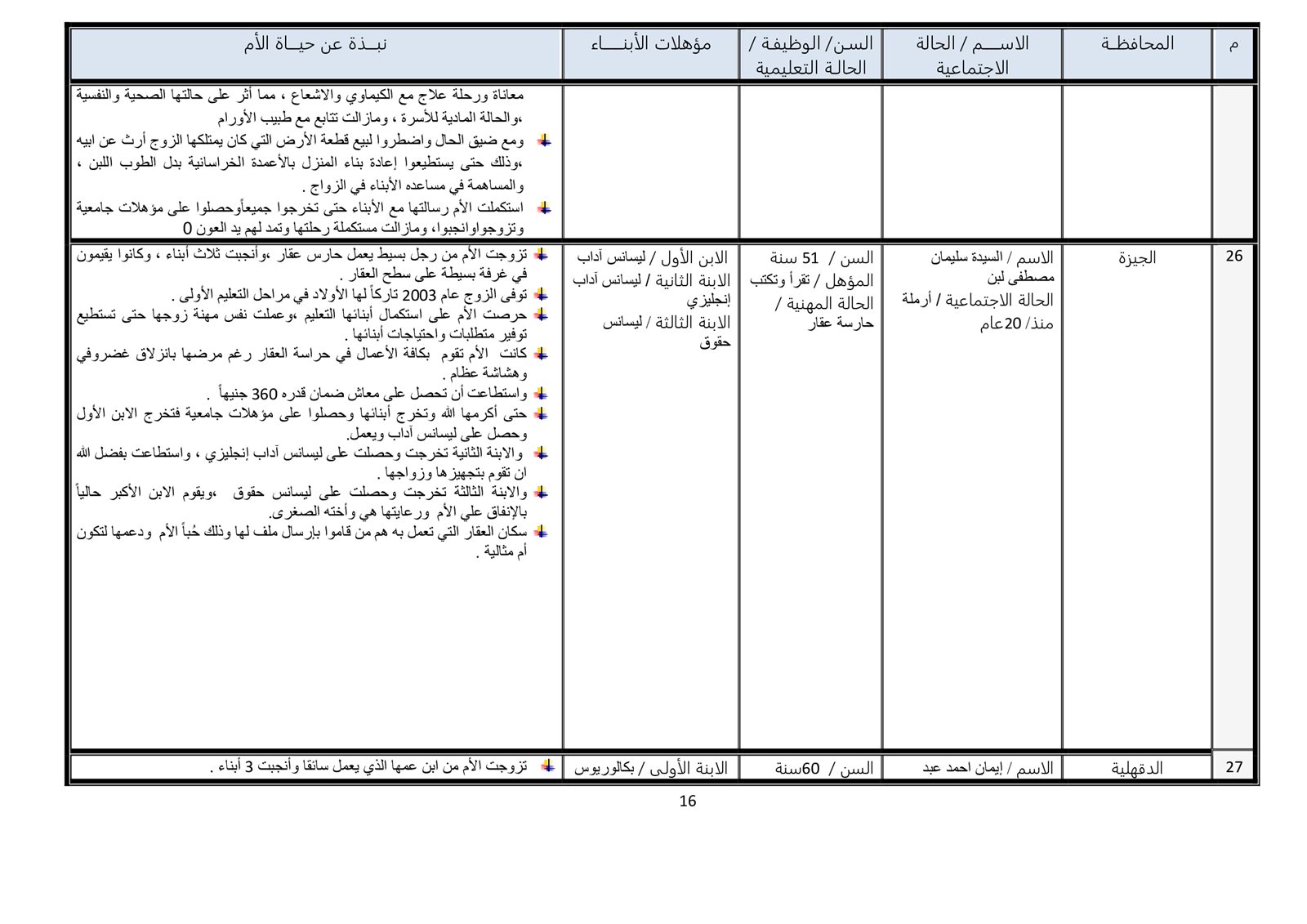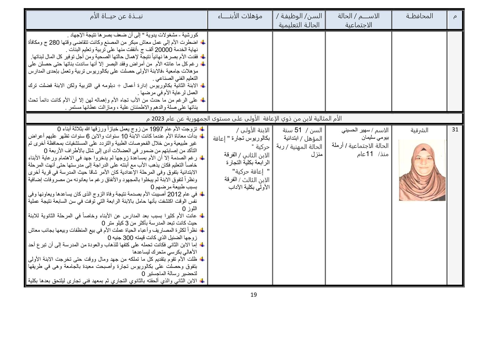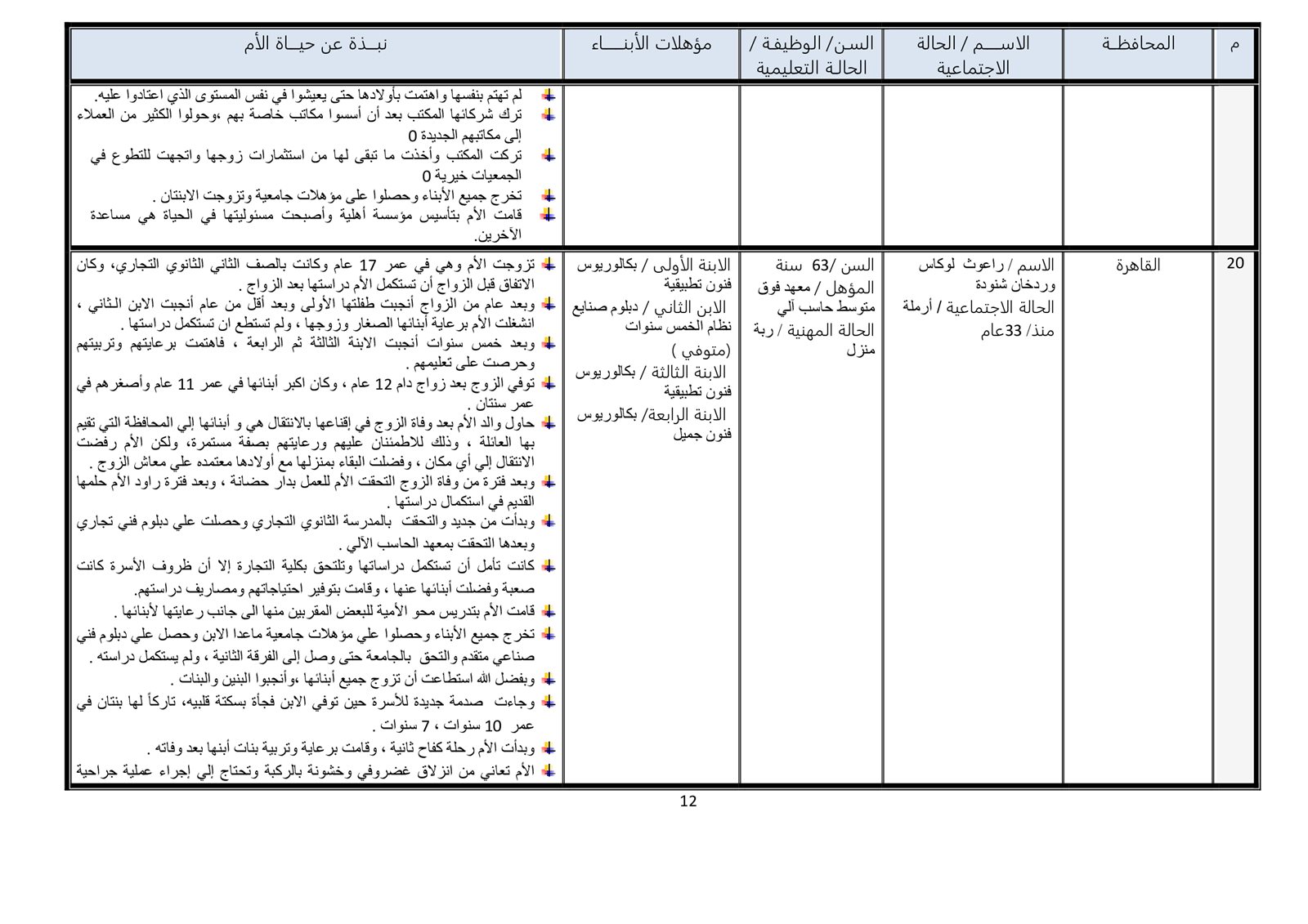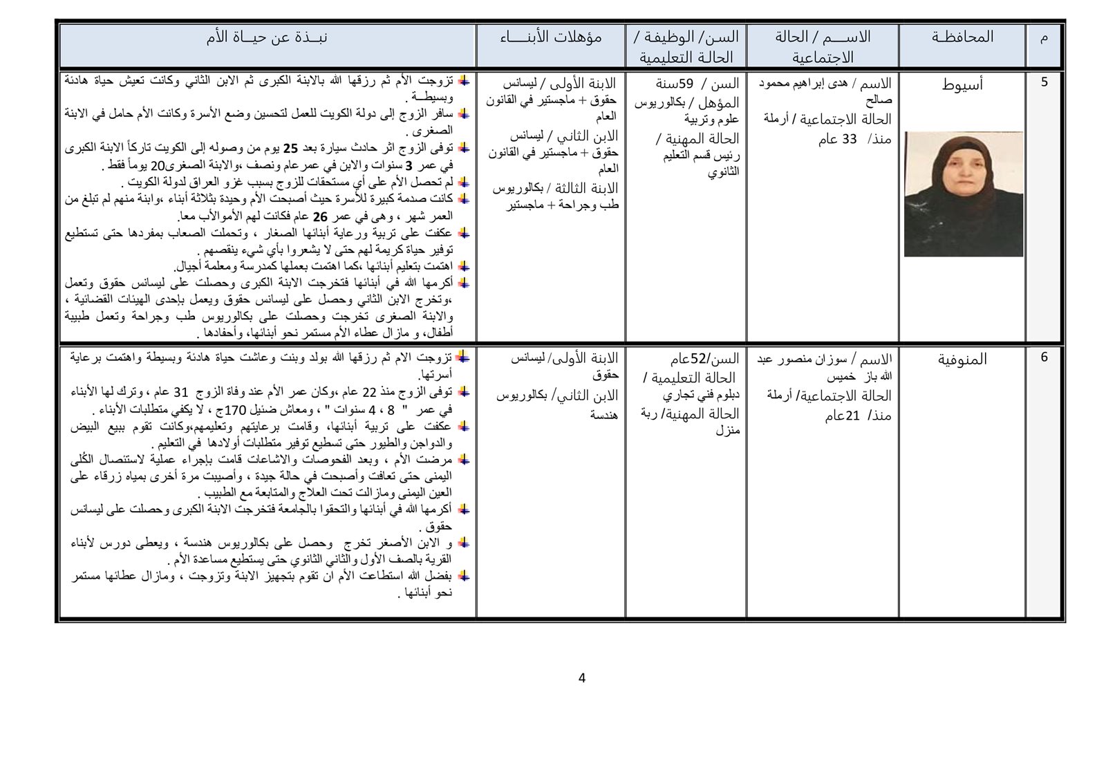 نشرت وزارة التضامن الاجتماعي تفاصيل قصص كفاح السيدات الفائزات في مسابقة الأمهات المثاليات 36 على مستوى الجمهورية.