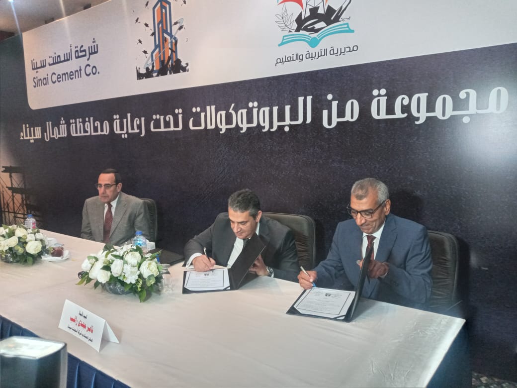 جاء ذلك خلال توقيع عدد 3 بروتوكولات بين شركة أسمنت سيناء وكل من مجلس مدينة العريش ومديرية التربية والتعليم بالمحافظة والمعهد العالى للهندسة والتكنولوجيا بالعريش، وذلك لتعزيز الدور المجتمعى للمؤسسات داخل الإقليم الواحد.