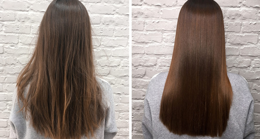 -تكثيف الشعر يجعل العلاج بالبروتين الشعر أكثر سمكًا وأطول وأكثر صحة.