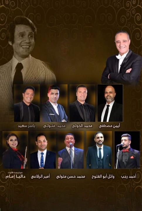 ويتضمن البرنامج مختارات من أهم أعمال العندليب الاسمر الخالدة منها: " كنت فين، على حسب وداد، حبيببها، رسالة من تحت الماء، لست قلبي، قارئة الفنجان، يا مالكا قلبى، فاتت جنبنا..أداء أيمن مصطفى، محمد الخولي، محمد متولي، ياسر سعيد، أحمد رجب، وائل أبو الفتوح، محمد حسن متولي، أمير الرفاعي وعازفة الفلوت داليا إمام".