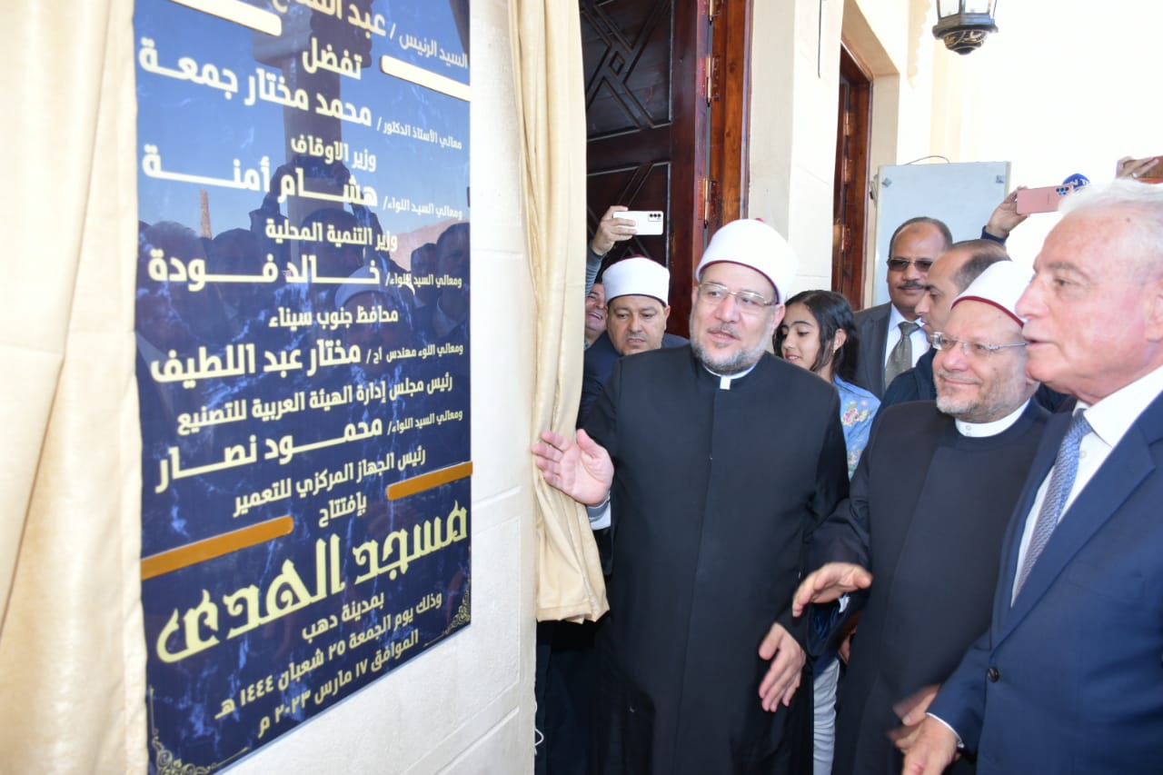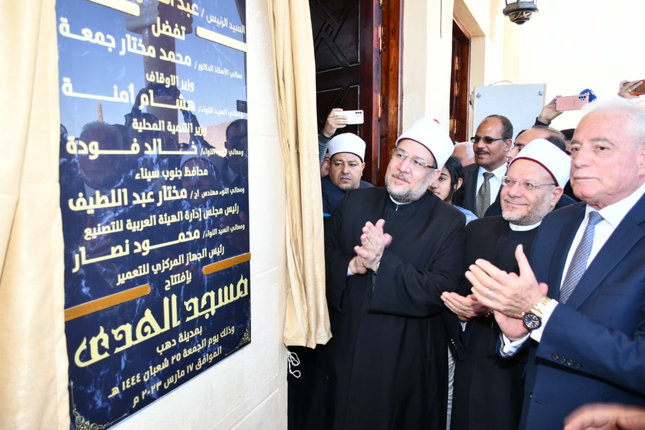 افتتح الدكتور محمد مختار جمعة وزير الأوقاف واللواء خالد فودة محافظ جنوب سيناء مسجد الهدى بمدينة دهب بمحافظة جنوب سيناء اليوم الجمعة 17/ 3/ 2023م.