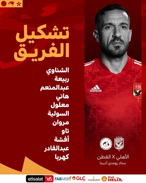 في خط الدفاع: علي معلول - رامي ربيعة - محمد عبد المنعم - محمد هاني.