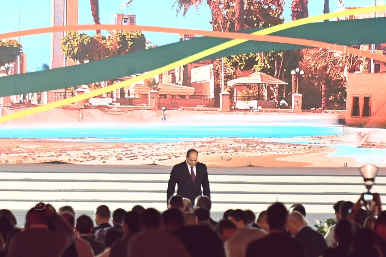 وقال الرئيس عبد الفتاح السيسي، خلال كلمته:"يوم جميل ومنظر جميل جدا وأنا سعيد بكم ومتشرف بكل الحضور والمشاركين، ومش عارف اشكركم ازاي؟ شايف قدام مني شباب وشابات واعمار مختلفة ومتطوع صغير بيقولي احنا موجودين".