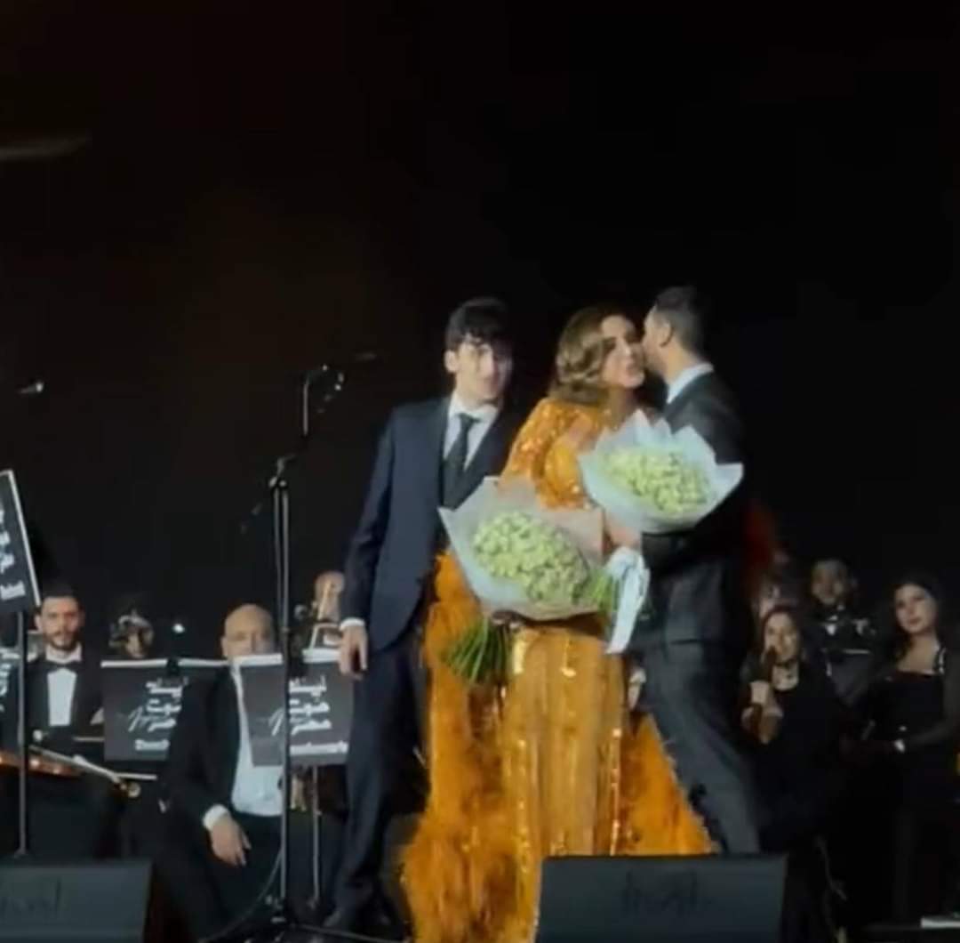 أبناء أنغام يفاجئونها بالورود على مسرح ليلة صوت مصر بالرياض (صور)