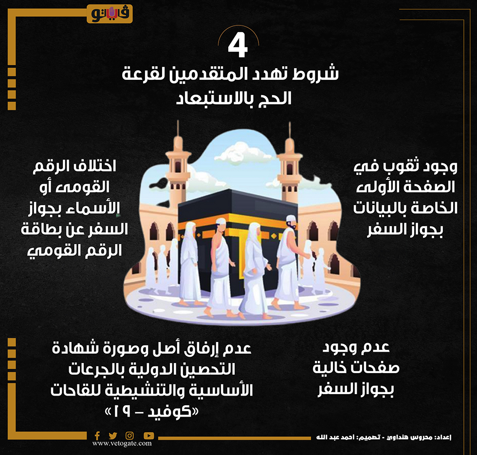 4 شروط تهدد المتقدمين لقرعة الحج بالاستبعاد (انفوجراف) الأحد 19/مارس/2023 - 08:00 م 3/19/2023 8:00:56 PM شروط تهدد المتقدمين لقرعة الحج بالاستبعاد، فيتو محروس هنداوي شارك طباعة 18 حجم الخط شارك طباعة الحج قرعة الحج قرعة الحج السياحي الحج السياحى اللجنة العليا للحج والعمرة