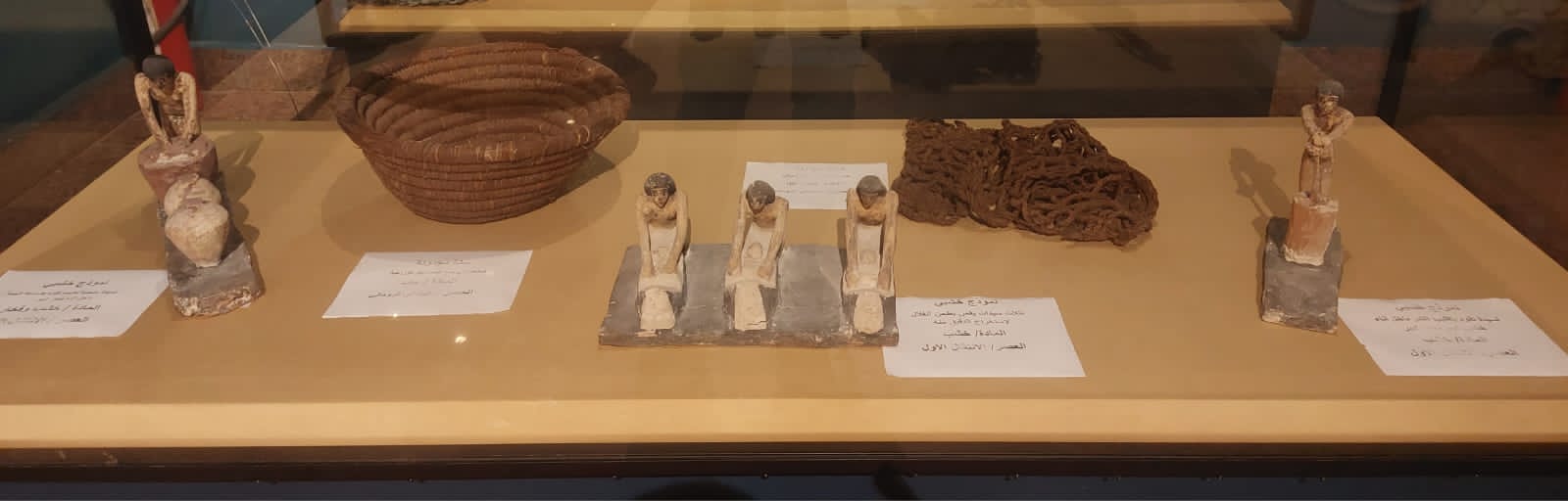 وأوضح مؤمن عثمان رئيس قطاع المتاحف بالمجلس الأعلى للآثار، أن المعرض سيستمر حتى يوم 28 أبريل، يعرض خلالها 5 قطع أثرية ترجع إلى عصور مختلفة، وتسلط الضوء على أعمال الزراعة والتي تشتهر بها محافظة المنيا، وهم عبارة عن نموذج خشبي لثلاث سيدات يقمن بطحن الغلال ونموذج آخر لسيدة تقوم بالطحن داخل إناء بواسطة عصا كبيرة من عصر الانتقال الأول، وسلة مجدولة من سعف النخيل لحفظ المخبوزات كانت تستخدم في أعمال الزراعة والأعمال المنزلية.