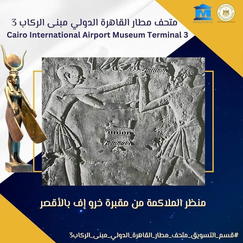 عرض متحف مطار القاهرة الدولي بمبني الركاب رقم 3، منظر من مقبرة خرو أف بالأقصر، لممارسة المصريين القدماء لرياضة الملاكمة.