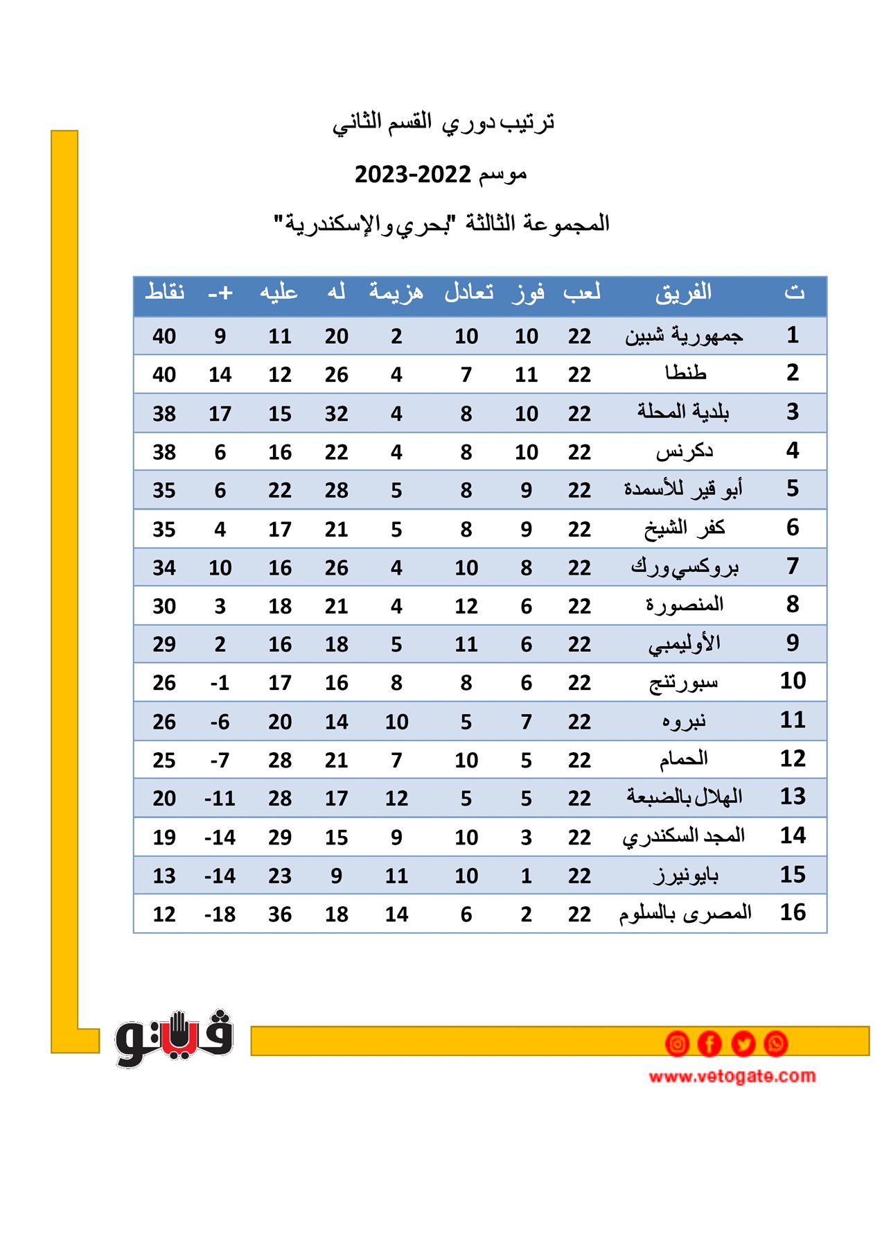 جدول ترتيب دوري القسم الثاني مجموعة بحري قبل مباريات اليوم