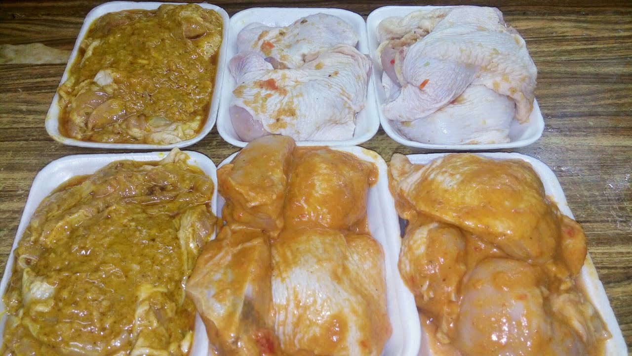 الفراخ المشويه تتبل بالبصل والملح والفلفل والبهارات، لتكون جاهزة للشوي.