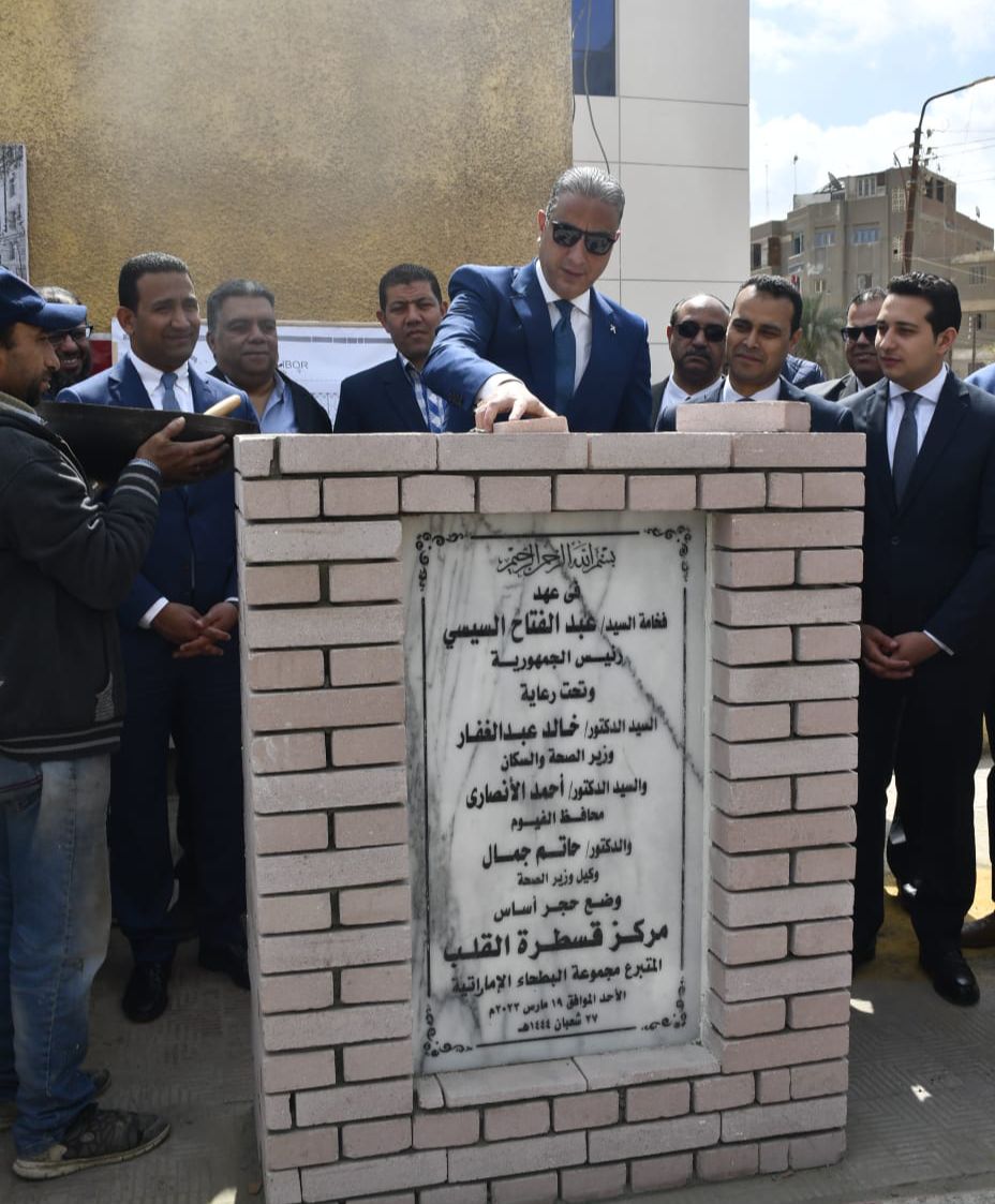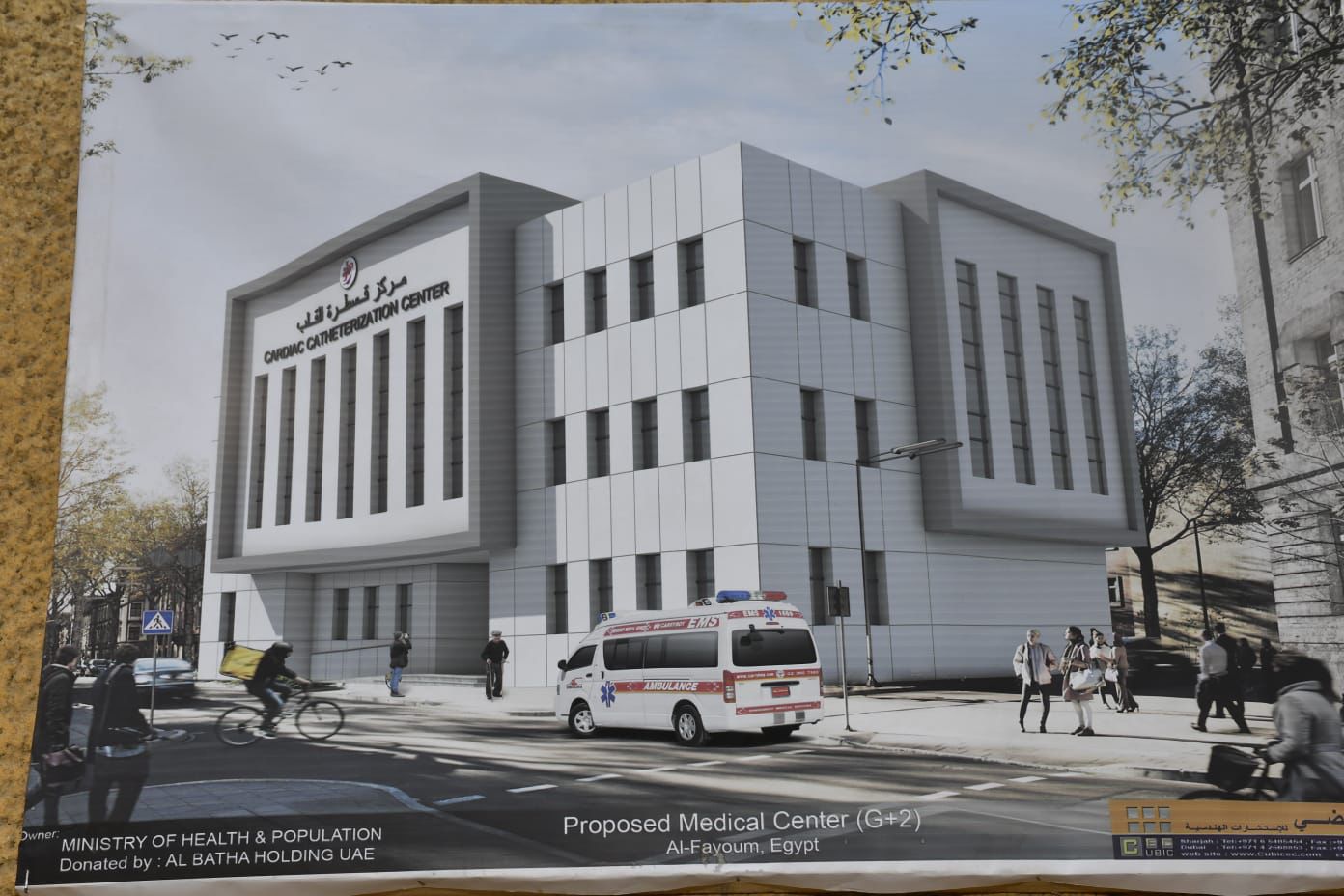 وبدأ الاحتفال بوضع امخافظ الفيوم لحجر الأساس مشروع مركز قسطرة القلب بمستشفى الفيوم العام، الذي سيقام على مساحة 750 مترا، بتكلفة إجمالية حوالي 3 ملايين دولار، تبرع من مجموعة البطحاء الإماراتية، حيث من المزمع انتهاء كافة الأعمال الإنشائية وتجهيزات المركز خلال عام.