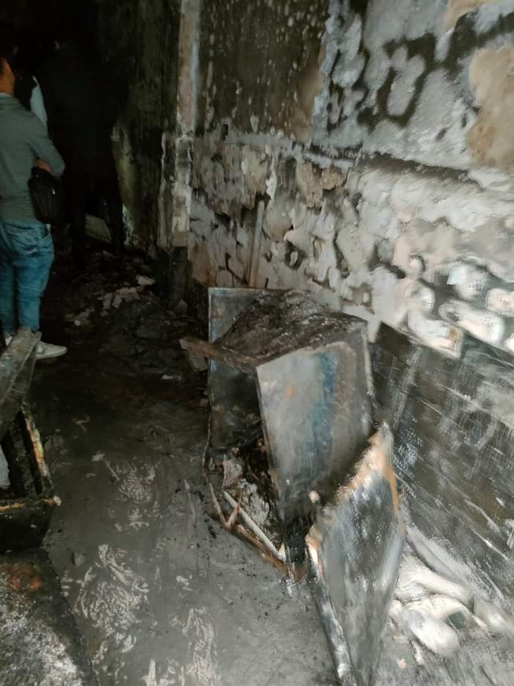 حرر محضر بالواقعة وتم انتداب خبراء الأدلة الجنائية لمعاينة موقع الحريق لمعرفة أسبابه وتم اتخاذ الإجراءات القانونية اللازمة واخطرت النيابة العامة.
