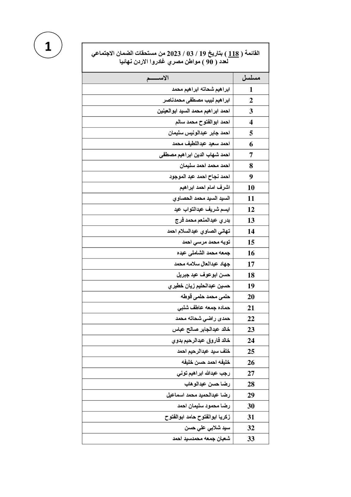 أعلن فيه وبالأسماء عن كافة معلومات هذا "الاستحقاق"، مناشدا جميع المواطنين الذين لهم مستحقات لدى المؤسسة العامة للضمان الاجتماعي، مراجعة الأسماء على موقع وزارة القوى العاملة، وكذلك المنشورة على صفحة "الفيس بوك" الخاصة بالسفارة المصرية بالأردن،وذلك للاستعلام عن الأسماء، وفي حال إذا كان الاسم موجودا على المستفيد سرعة التوجه إلى أقرب فرع لبنك القاهرة لصرف المستحقات فورا.