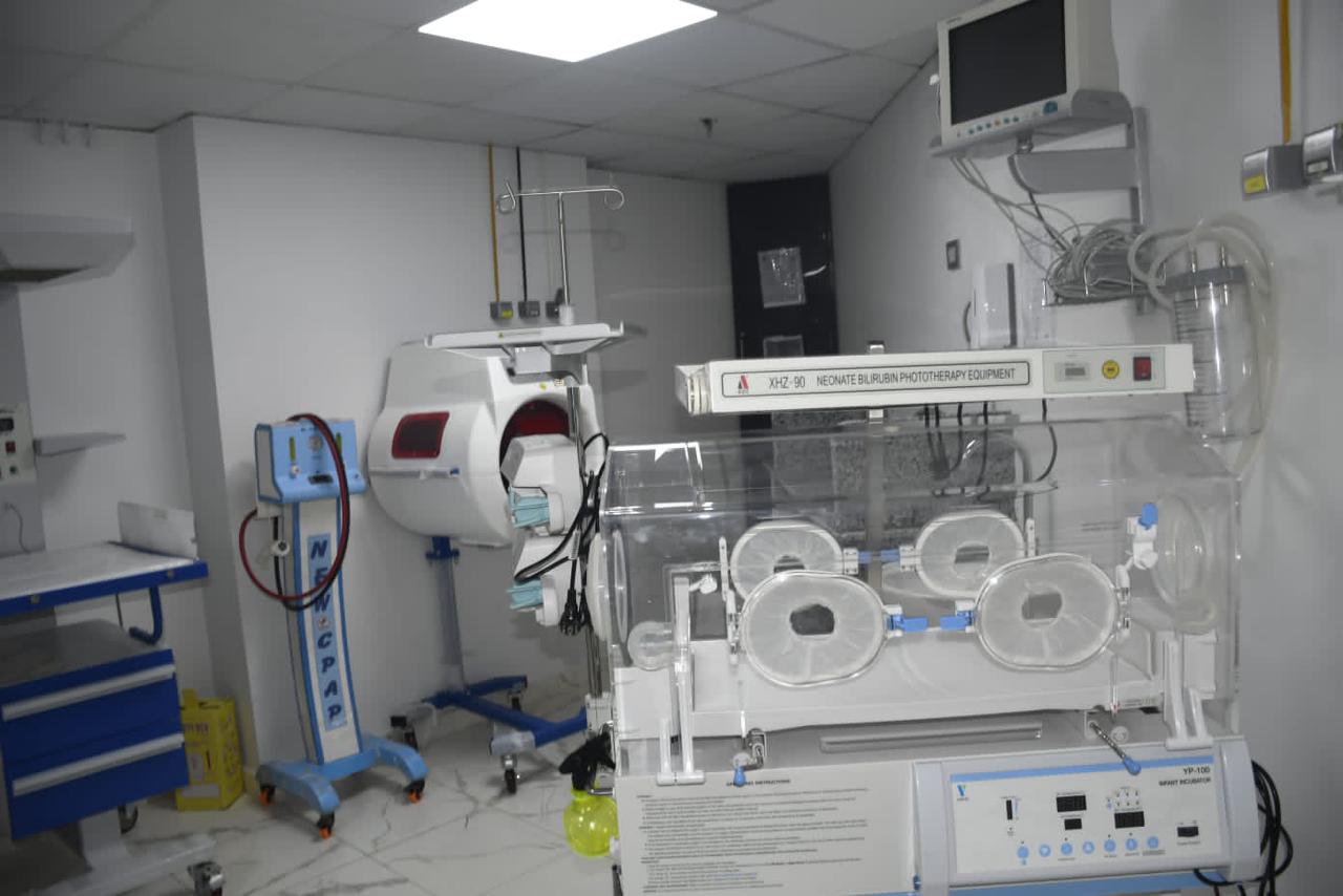 كما يشمل المستشفى وحدة حديثي الولادة المجهزة بأربع حضّانات، وتشغل العمليات والإفاقة مساحة الطابق الثاني بالكامل، حيث يحتوي على ٤ غرف عمليات مجهزة للعمليات الكبري مثل عمليات المخ والأعصاب، وجراحات الأوعية الدموية، والأورام، والعظام، والمسالك، والنساء والولادة، كما يضم الطابق الثالث أجنحة وغرف الإقامة للمرضى ومرافقيهم.
