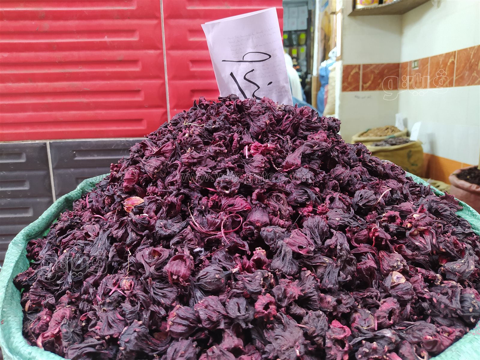 والكركدية أسواني زهرة وزن كيلو بـ 130 جنيها، خروب قرون قبرصي وزن كيلو 180 جنيها، بلح سكري وزن كيلو 140 جنيها، بلح سكري فاكيوم وزن كيلو 125 جنيها، بلح سكري 3 كيلو 360 جنيها، بلح علبة 30 و50 جنيها.