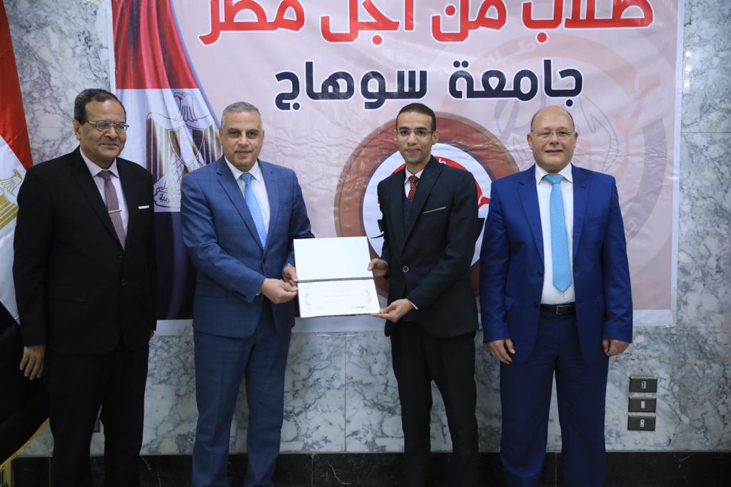 وعلى هامش الاحتفال قام الدكتور حسان النعماني نائب رئيس الجامعة ورئيس طلاب من أجل مصر بإهداء درع تذكاري المحافظ تقديرا لجهوده في دعم الأنشطة المختلفة لطلاب جامعة سوهاج، ومن بينها أنشطة طلاب من أجل مصر، كما تم تكريم عدد من الطلاب اللذين شاركوا في مبادرة "من حقك تعرف" التي أطلقها محافظ الإقليم لتعريف الشباب بالمشروعات القومية.