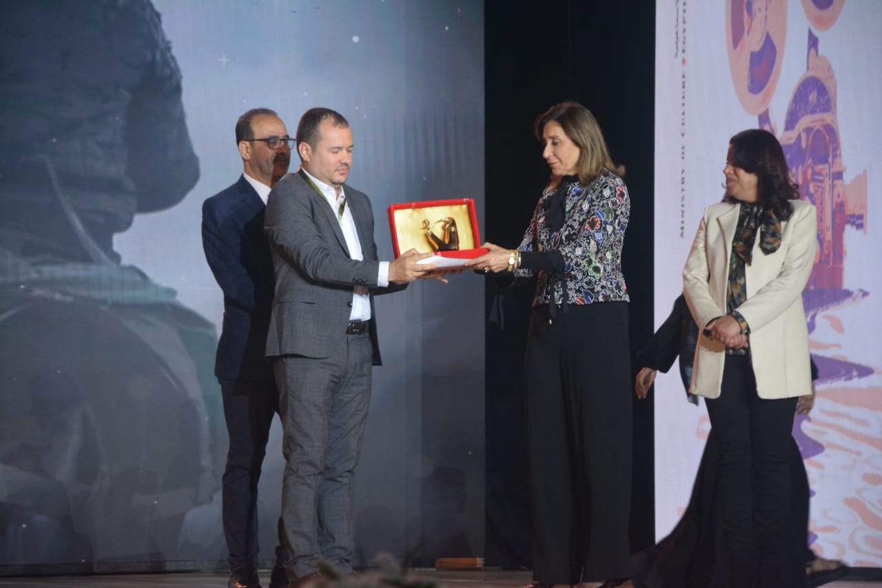 خلال الحفل كرمت وزيرة الثقافة دكتورة نيفين الكيلانى، اللواء أركان حرب شريف فهمي بشارة محافظ الإسماعيلية لدعمه لمهرجان الإسماعيلية.