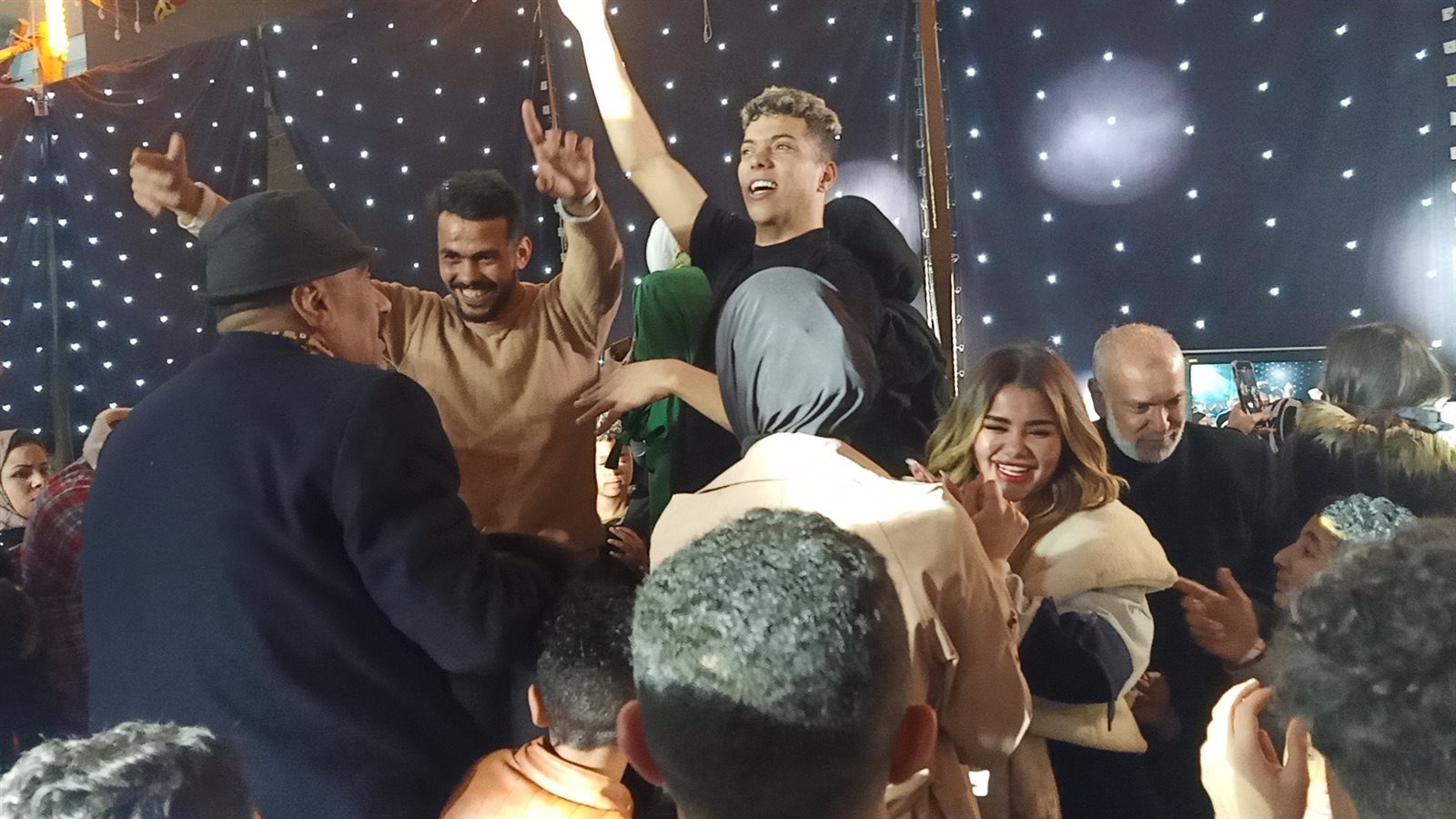 وتعالت الأغاني وإطلاق الشماريخ والزغاريد ودخل الشباب والفتيات في وصلات رقص هستيري.. وكانت ياسمين حافظ احتفلت بخطبتها لإمام عاشور في الأسبوع الأول من يناير الماضي.