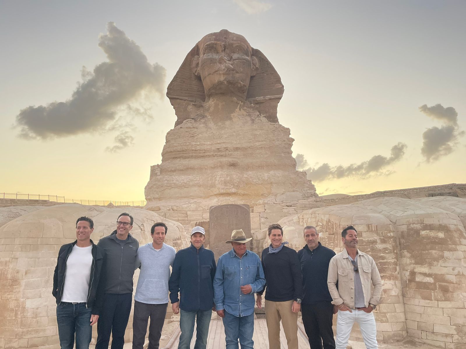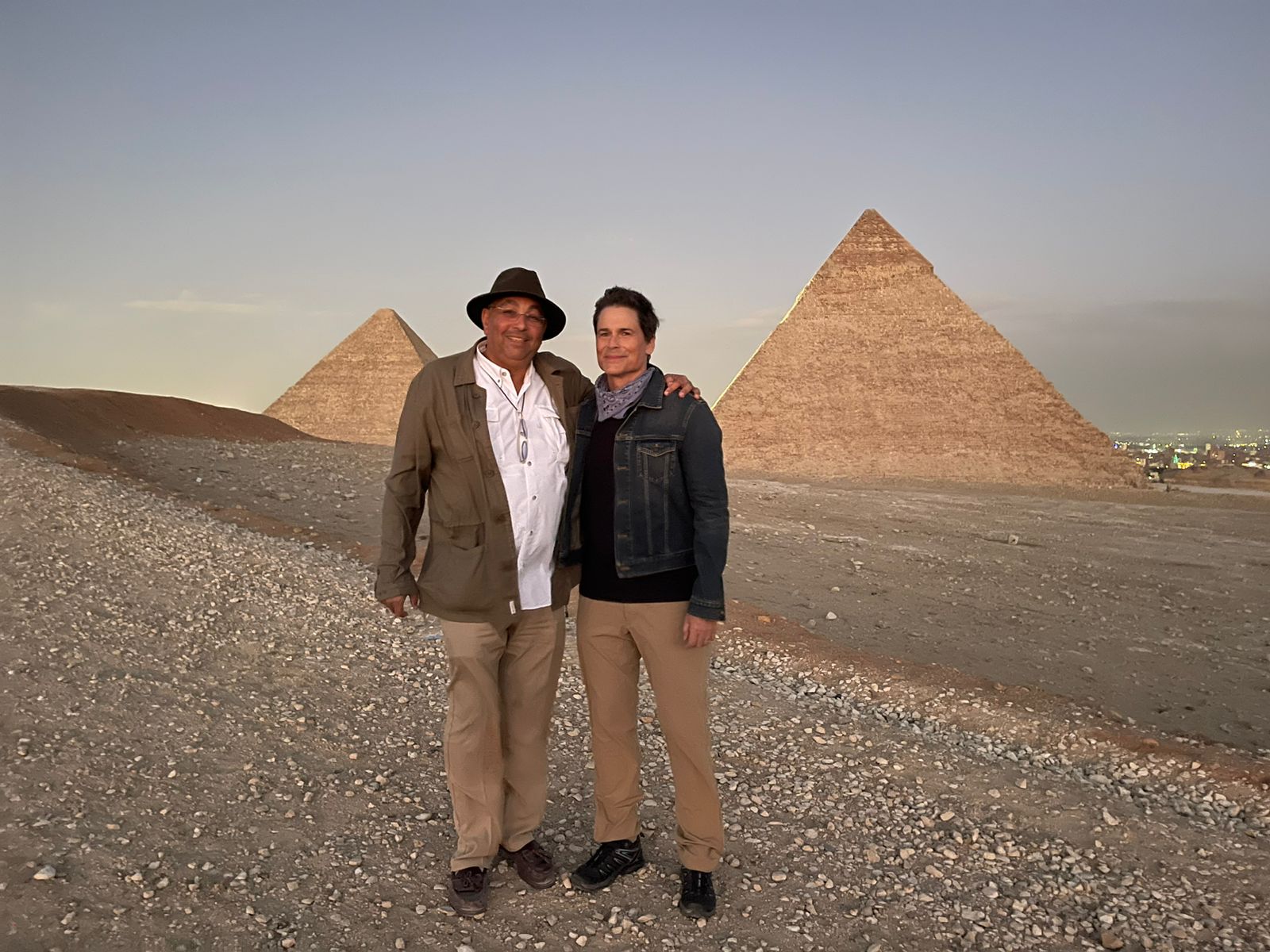 التقي الدكتور زاهي حواس عالم الآثار المصرية والوزير الأسبق، مع الفنان العالمي "روب لو" وذلك أمام تمثال أبو الهول بالجيزة.