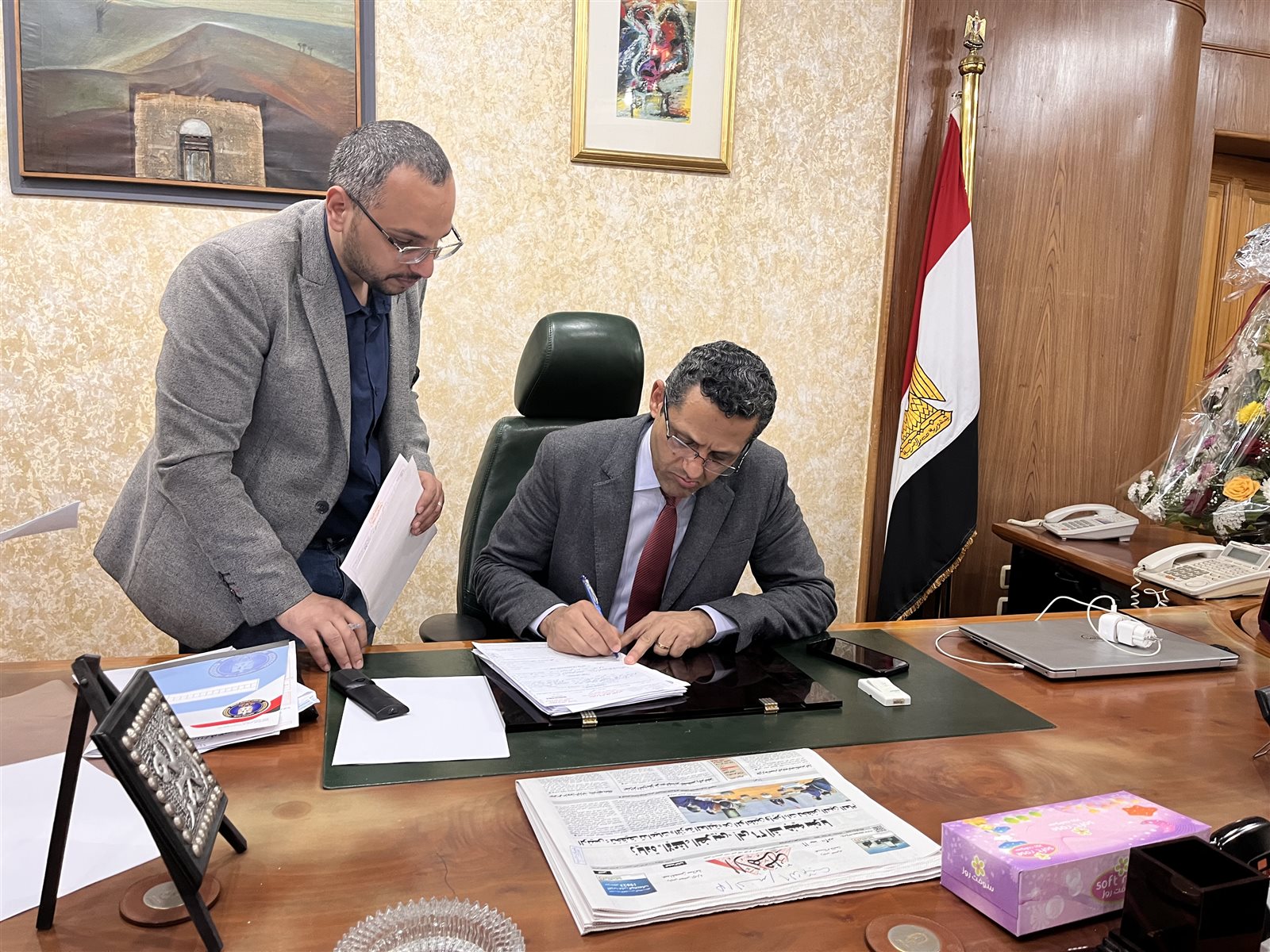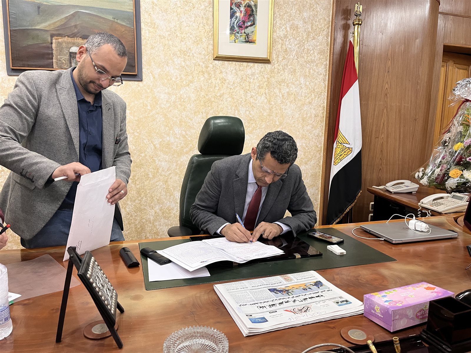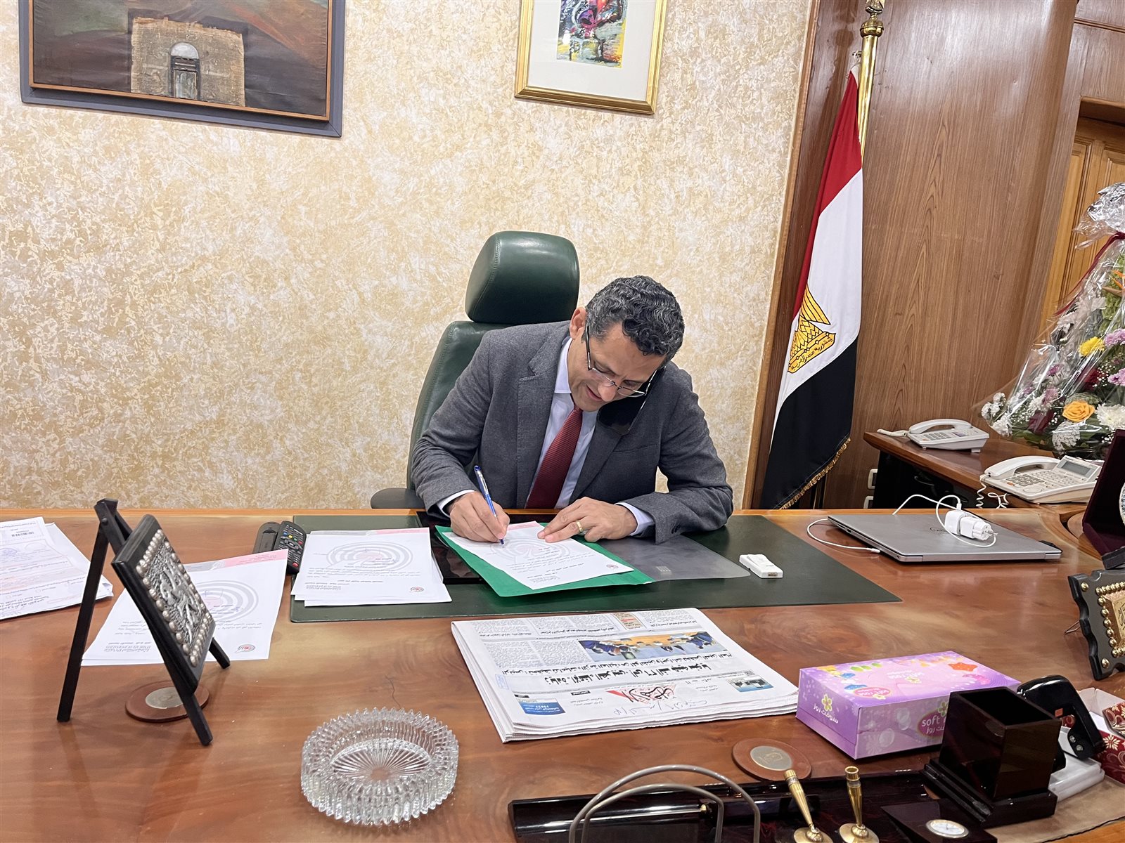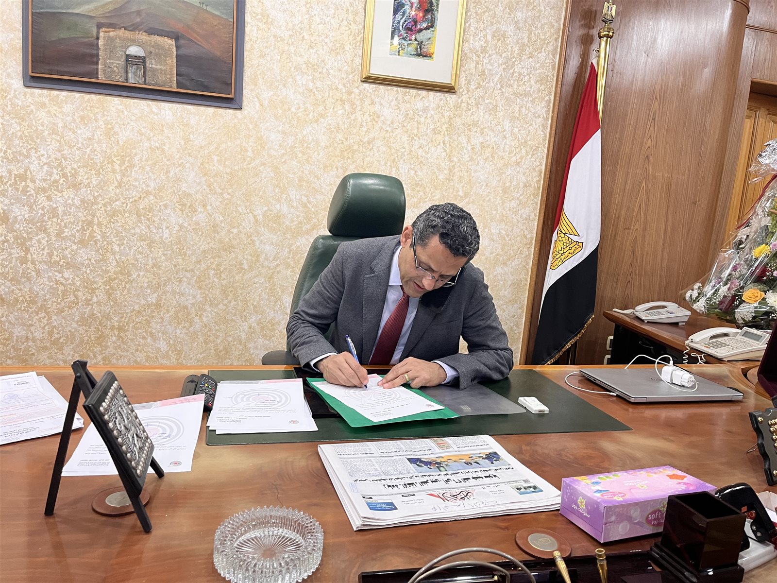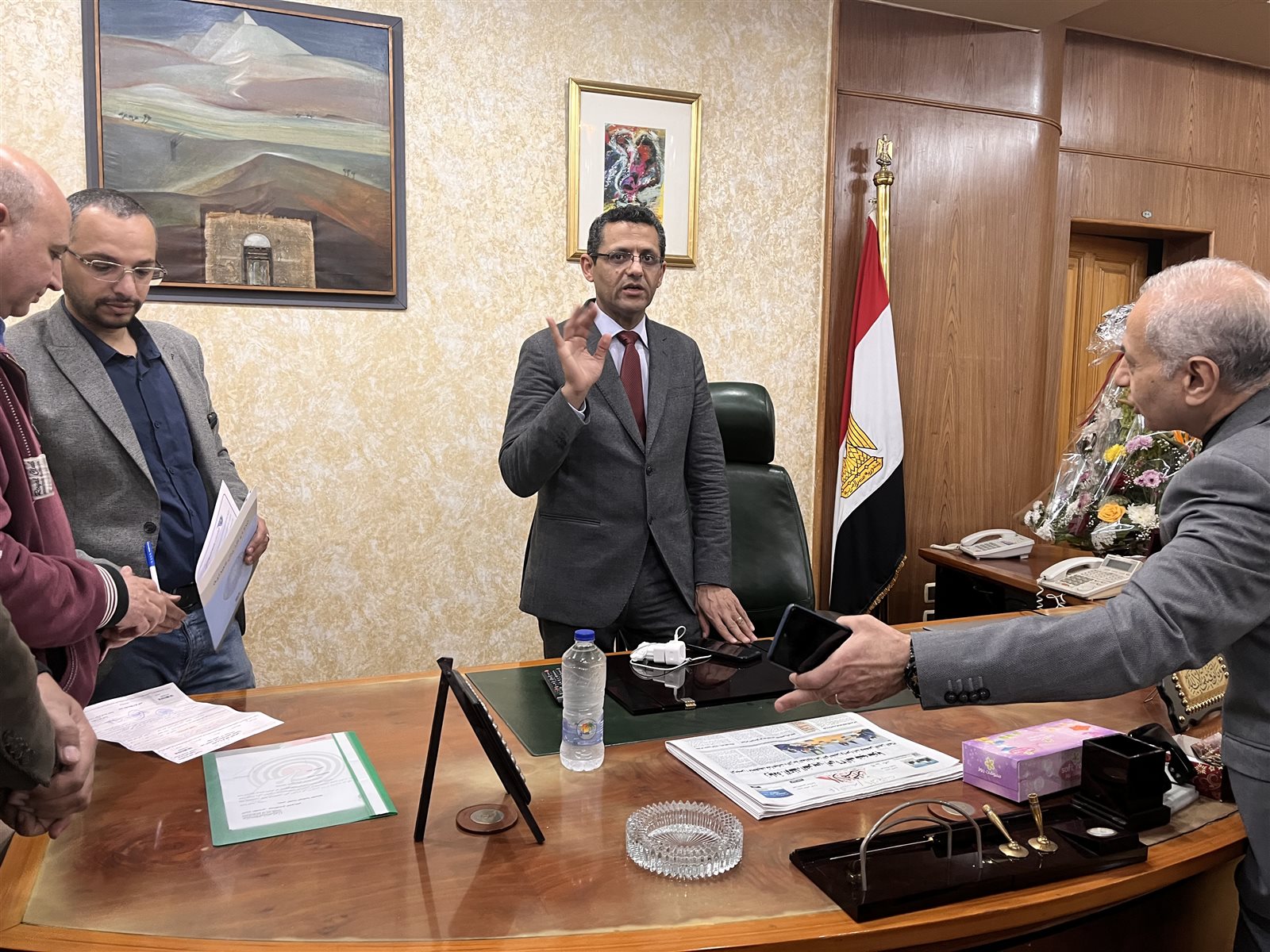 وصول الكاتب الصحفي خالد البلشي نقيب الصحفيين إلى مكتبه