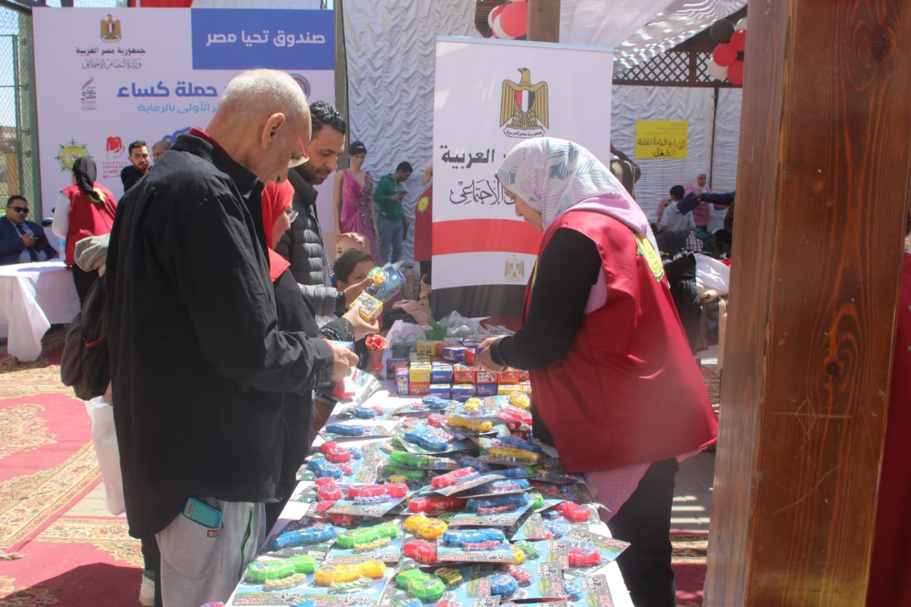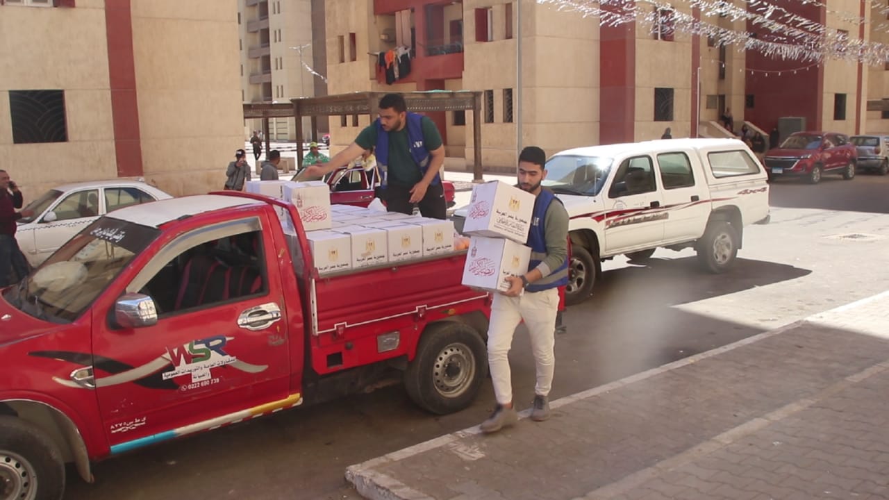 وانطلقت القافلة من مركز شباب الخيالة، حيث قام فريق من شباب المتطوعين بتوزيع كراتين السلع الغذائية واللحوم وبونات للحصول على الملابس مجانا من معرض الملابس الذى أقيم داخل منطقة الخيالة لخدمة الأهالي، وقد تم توزيع نحو 15 ألف قطعة ملابس و4 آلاف لعبة للأطفال و2.7 طن لحوم و5 أطنان فواكه، لعدد 1360 أسرة والذين تم نقلهم للمشروع من المناطق العشوائية، حيث يتضمن مشروع أرض الخياله عدد 2268 وحدة سكنية.