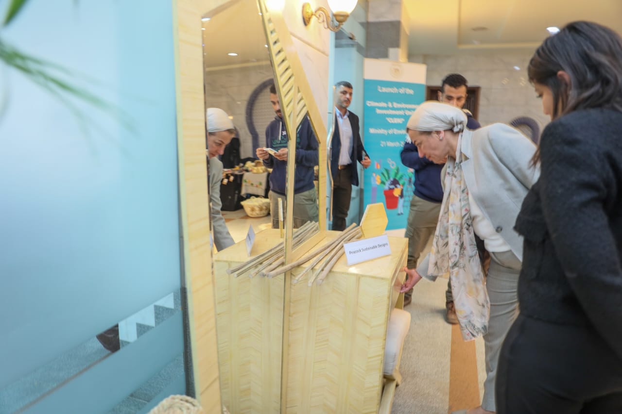 تفقدت الدكتورة ياسمين فؤاد وزيرة البيئة على هامش احتفالية إطلاق وحدة الاستثمار البيئي والمناخي،معرضا للمنتجات الصديقة للبيئة لعدد من رواد الأعمال، والأعمال الفنية المعدة من مواد معاد استخدامها وتدويرها سواء منسوجات أو زجاج أو معدن أو بلاستيك.