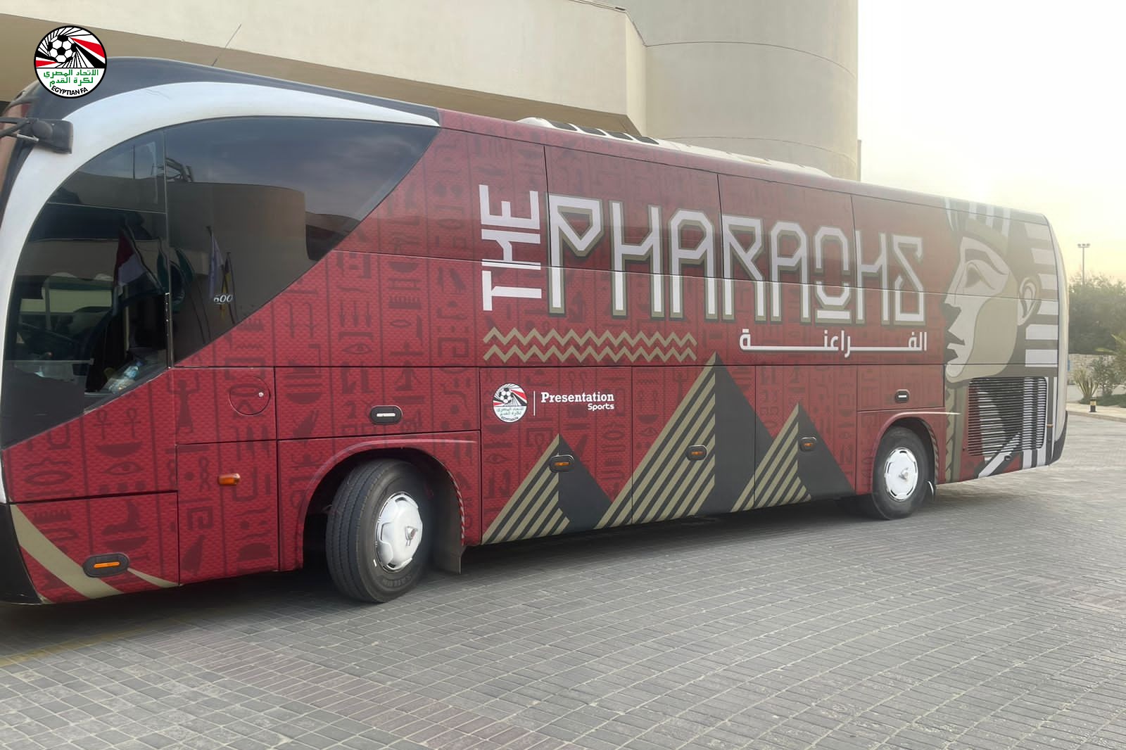 تصميم فرعوني لأتوبيس منتخب مصر قبل مواجهة مالاوي