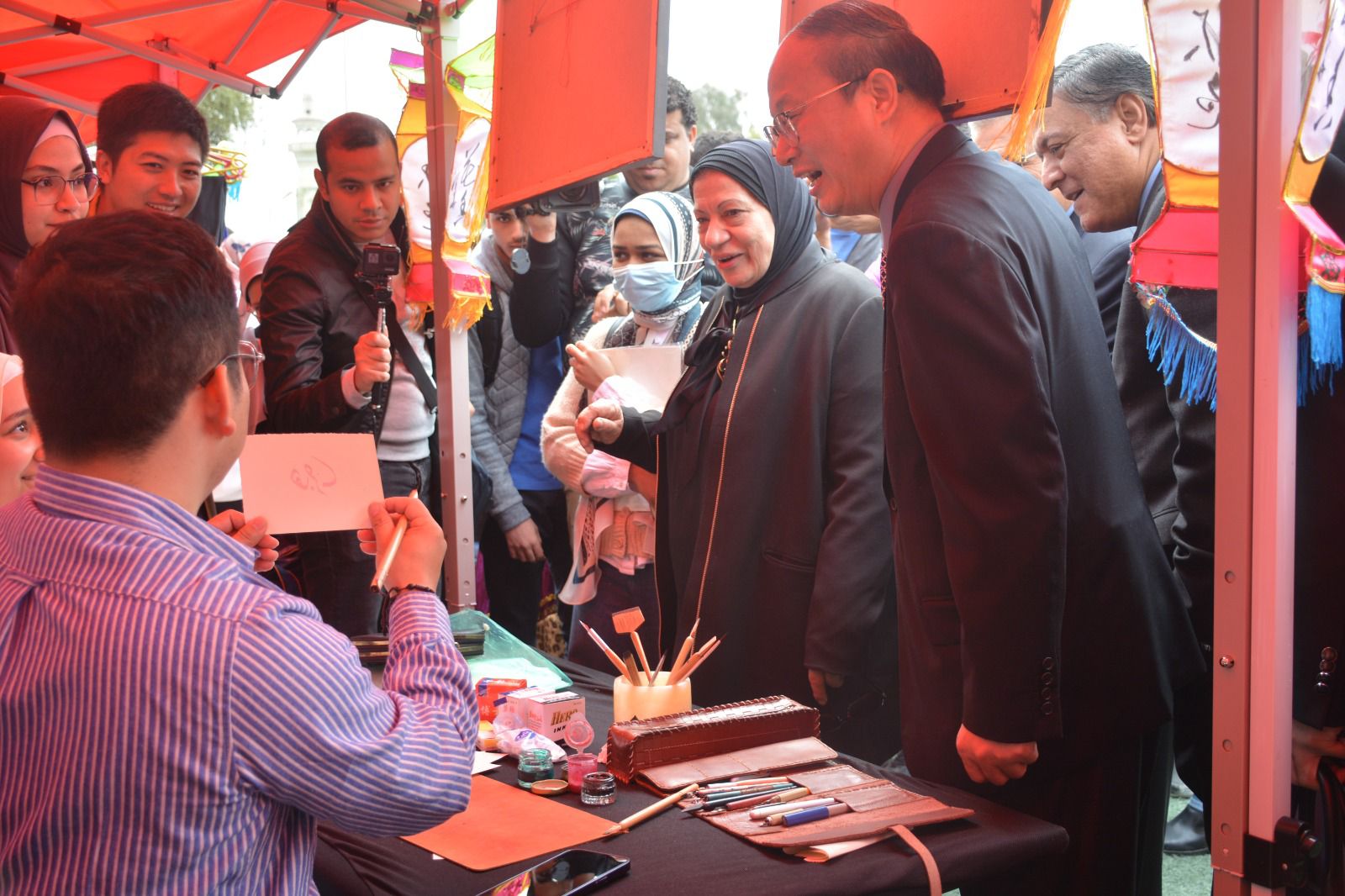 وقالت الدكتورة كريمة عبدالكريم إنها تتوجه بالشكر للمكتب التعليمي والمكتب الثقافي بالسفارة الصينية على دعمهما لفعاليات اليوم الثقافي بالجامعة المصرية الصينية، كما قدمت التهنئة القلبية الصادقة للسفير لياو لي تشيانغ سفير جمهورية الصين الشعبية وأعضاء السفارة الصينية والأصدقاء الصينيين في الصين ومصر بمناسبة إعادة انتخاب الرئيس الصيني شي جين بينغ رئيسا لجمهورية الصين الشعبية لفترة ثالثة.