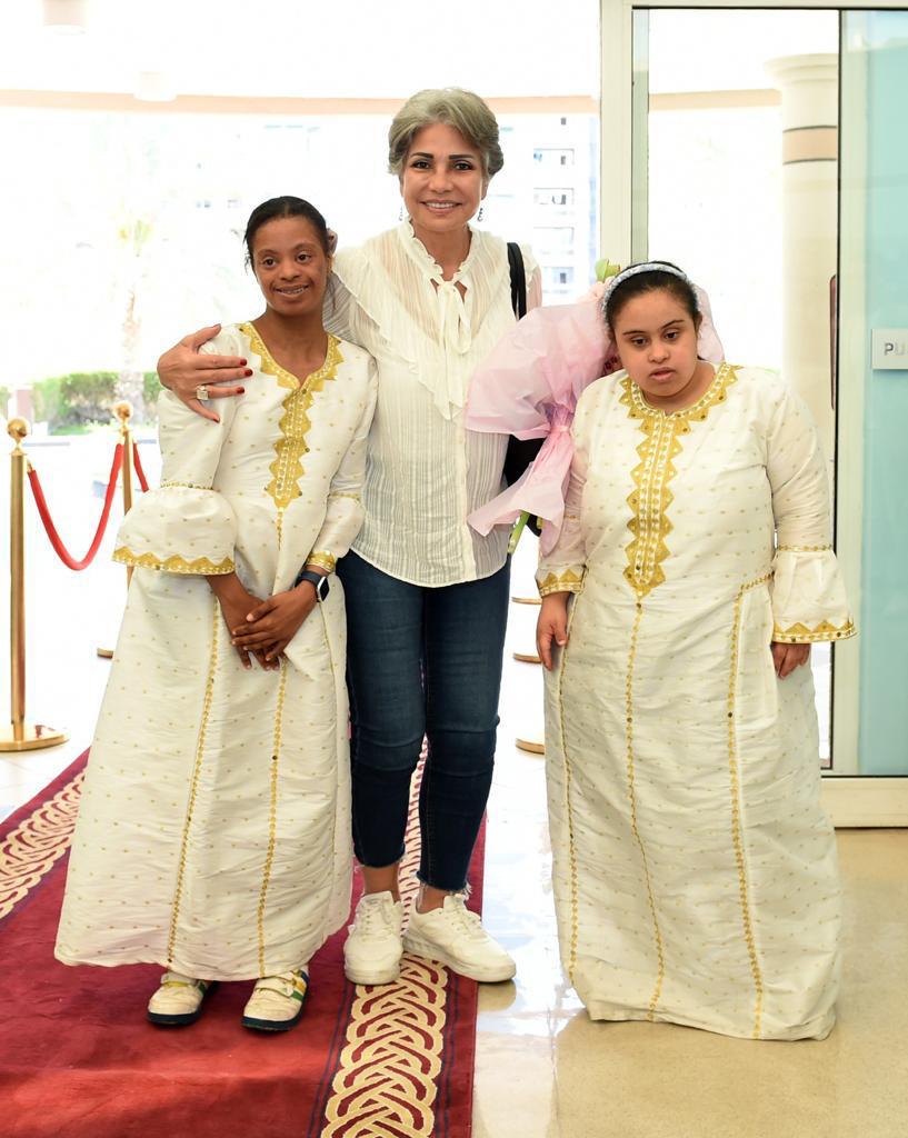 حيث كان في استقبالها السيدة مريم عثمان، المدير العام لمركز راشد لأصحاب الهمم، وعدد من مسؤولي الأقسام ومعلّمي المركز، بالإضافة إلى ذوي الهمم الذين استقبلوا الفنانة المصرية بباقات من الورود والمحبّة.