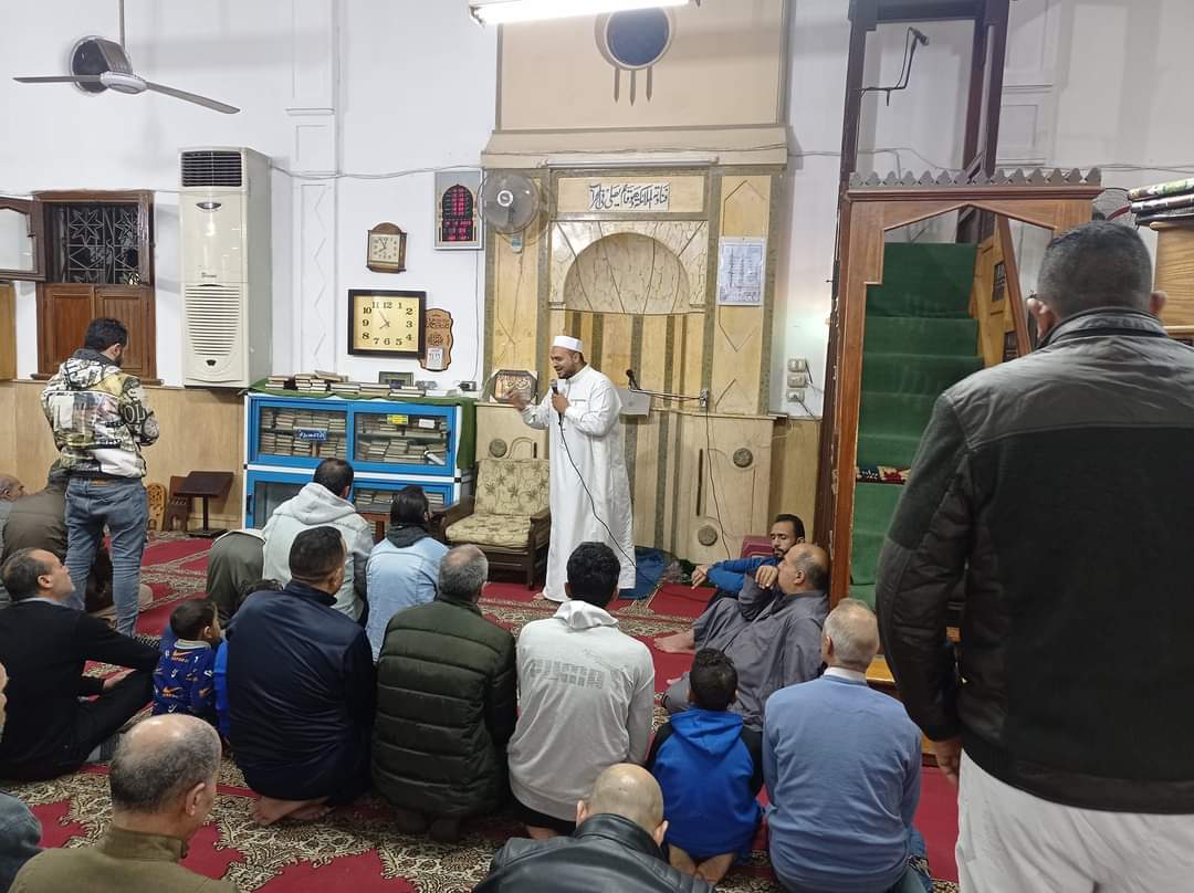 وأم صلاتي العشاء والتراويح الشيخ محمد رجب إمام وخطيب المسجد، الذي قام بخطبة قصيرة خلال فترة الراحة عن فضل شهر رمضان المبارك.