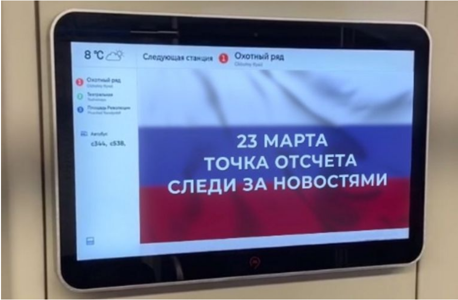 رسالة من أربع كلمات (23 مارس.. نقطة البداية) مكتوبة على علم روسي في الخلفية لكنها أزاحت الستار عن إعجاب كثيرين بفكرة الإعلان على اللوحات وانتشارها بهذا الشكل، دون الالتفات لأي وسيلة مواصلات.