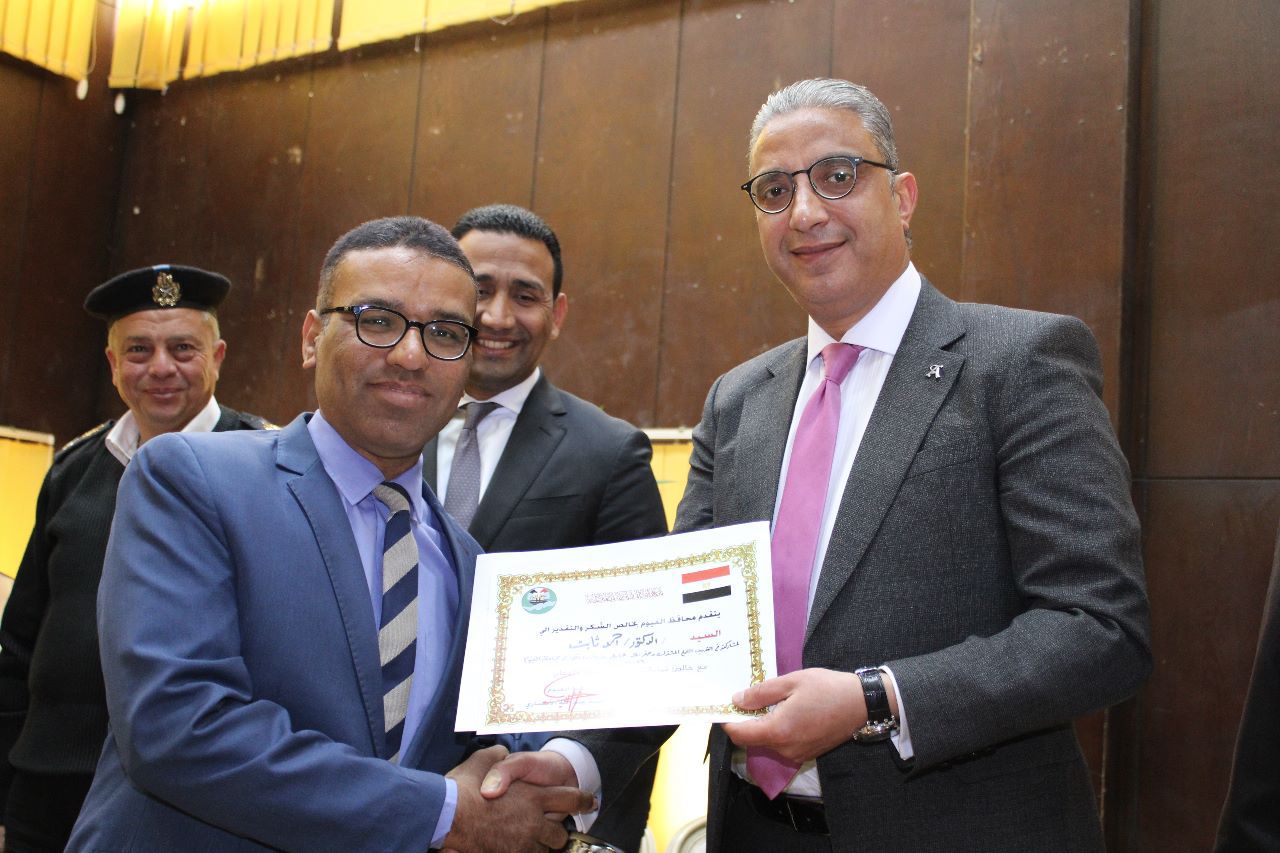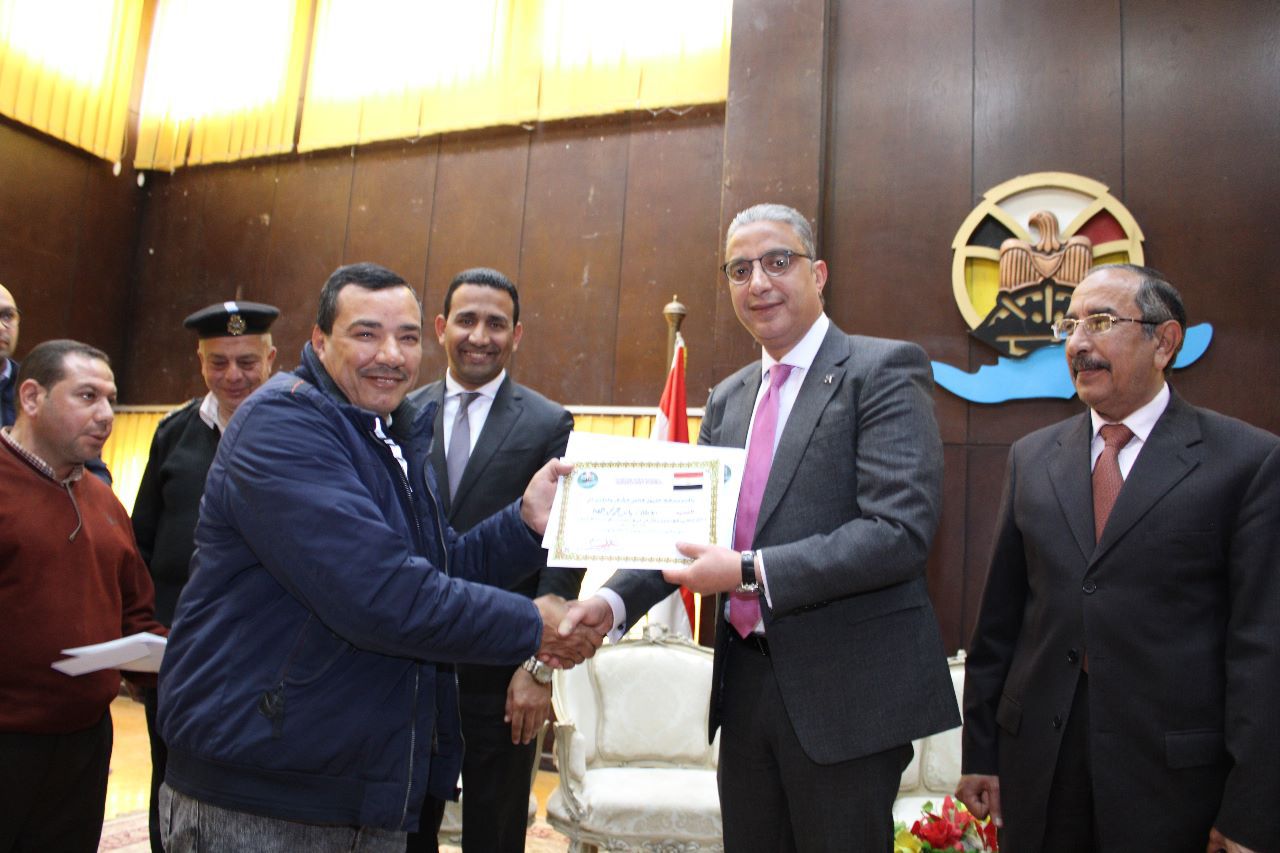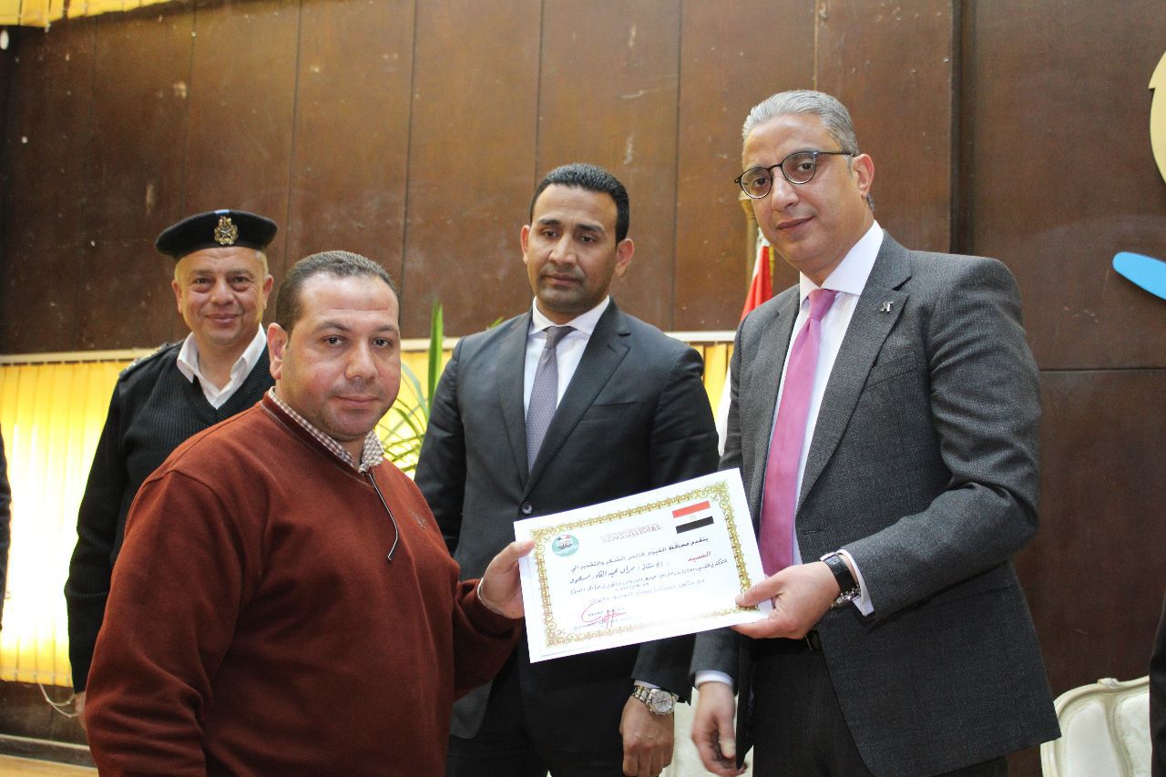 وعلى هامش اجتماع المجلس التنفيذي، سلم الدكتور أحمد الأنصاري محافظ الفيوم، شهادات التقدير، لرؤساء مجالس المدن وممثلي الجهات المشاركة، بفعاليات التدريب العملي المشترك "صقر 110" الذي تم تنفيذه، خلال الفترة من 29 إلى 31 من شهر يناير الماضي، تكريمًا وتقديرًا لهم، لما بذلوه من جهد وما أظهروه من تميز خلال فعاليات التدريب، ما أدى إلى نجاح التدريب بشكل غير مسبوق.