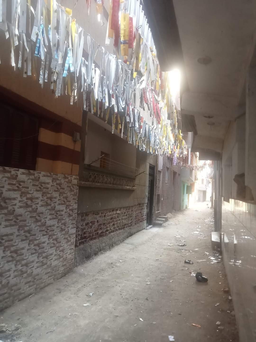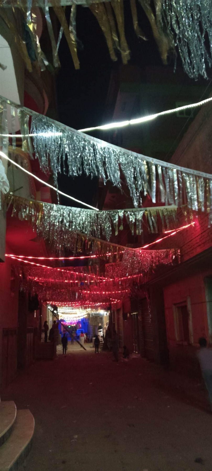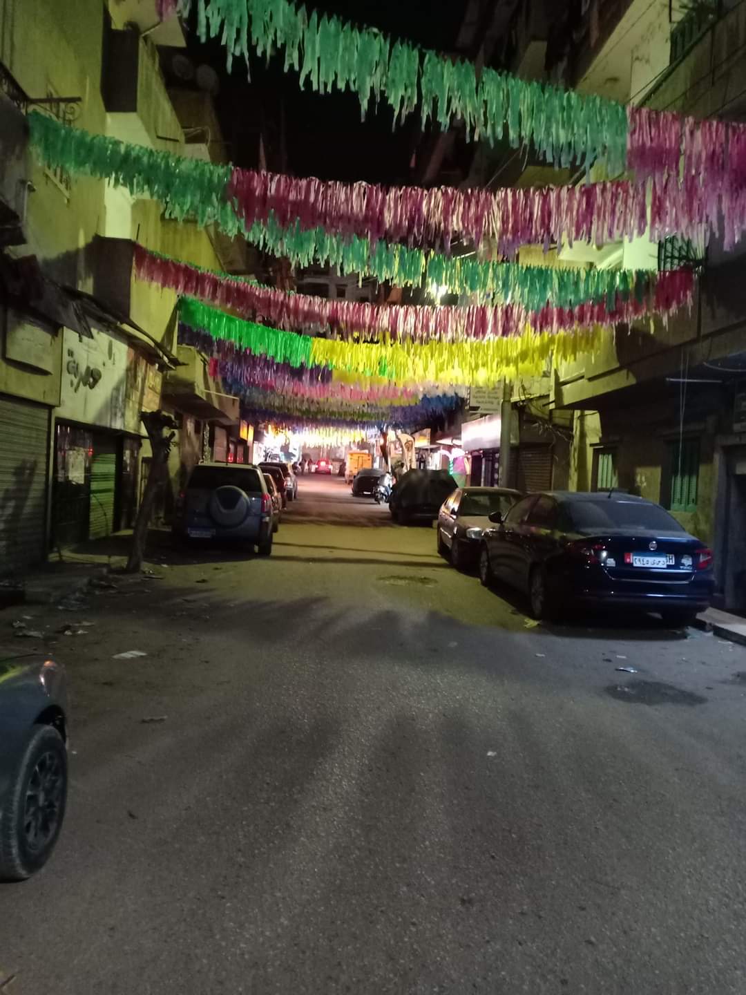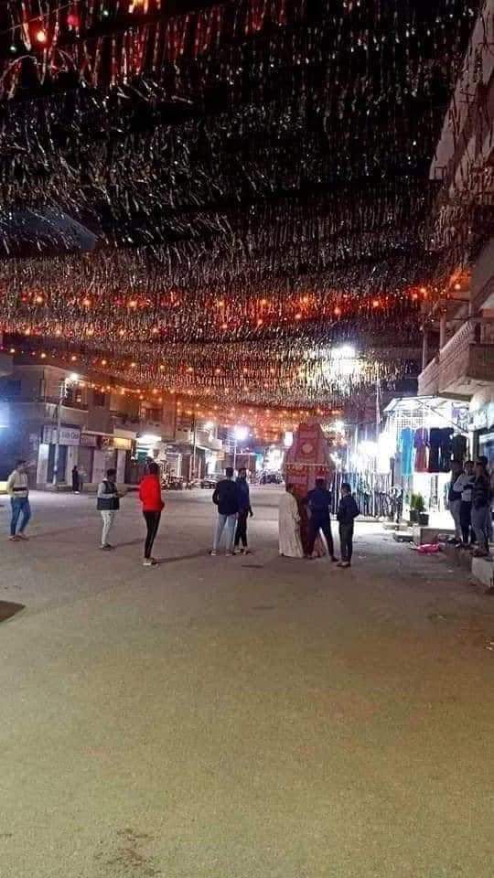 فيما تزينت شوارع أخرى بالشراشيب الخيامية وأسلاك الكهرباء الملونة ومعلق بها الفوانيس والهلال والنجمة، وقام البعض بتعليق الزينة ومعها مكسر مضيء بألوان مختلفة زاهية ومبهرة.