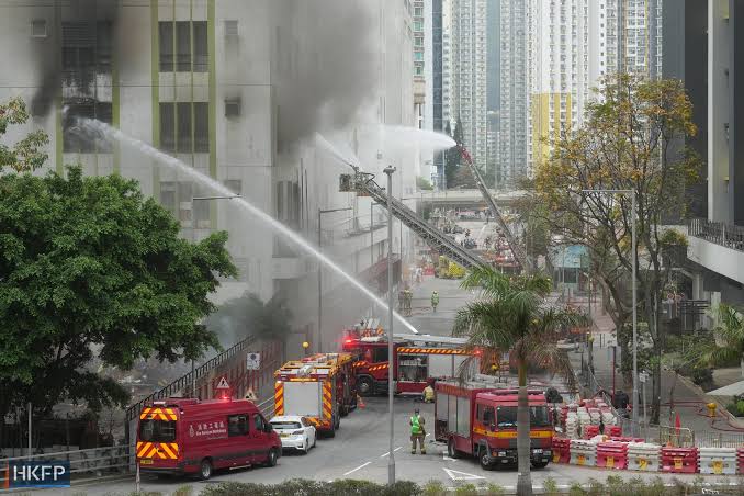 وكافحت فرق الإطفاء الحريق الذي شب في مشروع لإعادة التطوير في منطقة تسيم شا تسوي، وكان من الممكن رؤية ألسنة اللهب من على الجانب الآخر لميناء فيكتوريا.