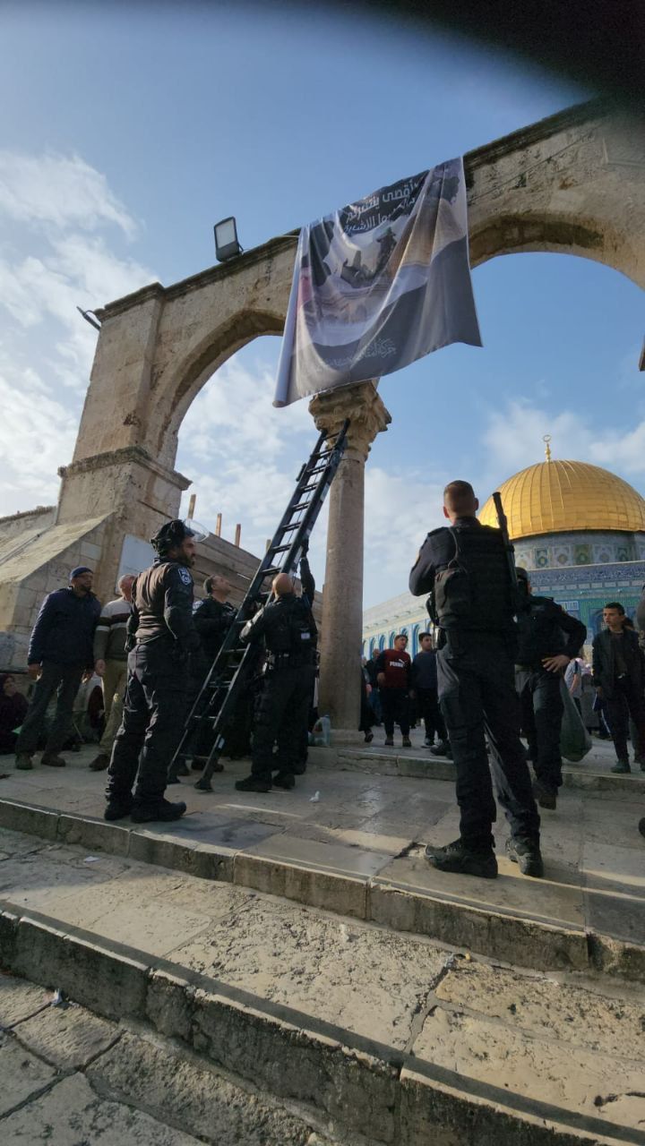 اقتحمت شرطة الاحتلال الإسرائيلي، عصر اليوم الجمعة، باحات الأقصى، وأزالت الأعلام الفلسطينية المرفوعة على مداخل المسجد واليافطات التي تم تعليقها عقب الصلاة.