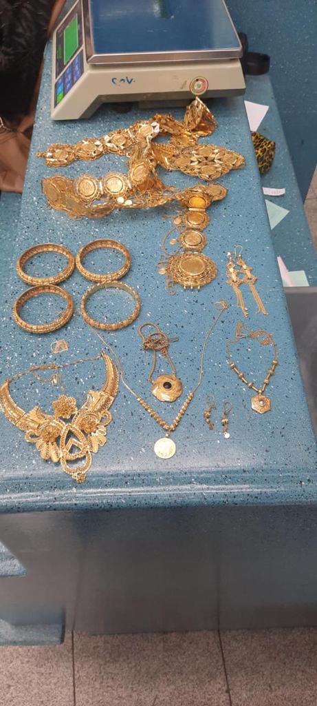 بتفتيش الراكبة ذاتيا فوجدت كمية اخري تقارب ال ٢٠٠ جرام ترتديها الراكبة تم منحها اياهم كونهم ذهبها الشخصي الذي ترتديه، قام مدحت عبد الصبور مدير الجمرك بتكليف لجنة مكونه من عبد القوي عزوز وإبراهيم حسن ووحسن ابو زهرة تحت اشراف إكرامي احمد وذلك لجرد ووزن وتحريز المضبوطات والتي بلغ وزنها ٨٠٠ جرام.