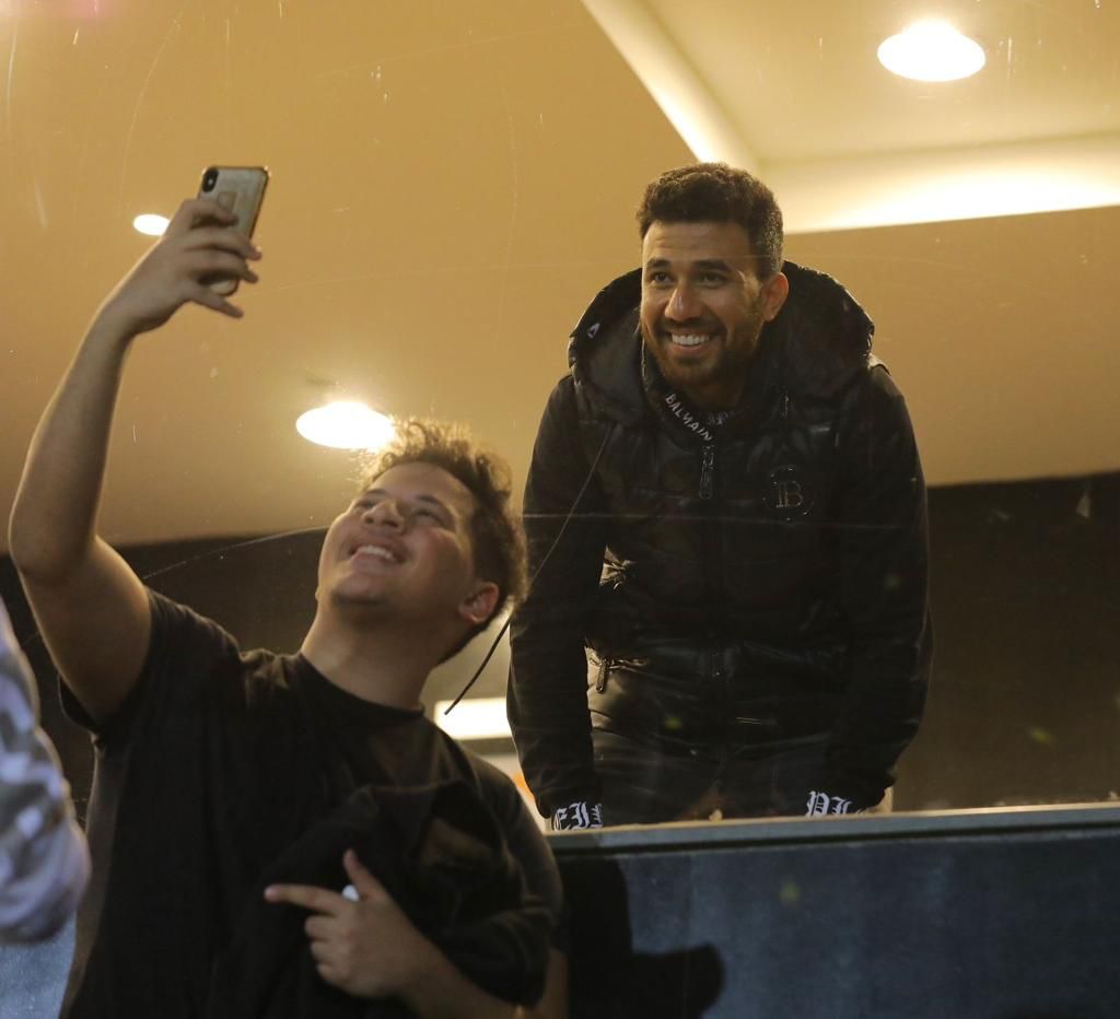 وحرص تريزيجيه على تلبية رغبة عدد كبير من الجماهير المتواجدة في مقصورة استاد الدفاع الجوي، لالتقاط الصور التذكارية معه.